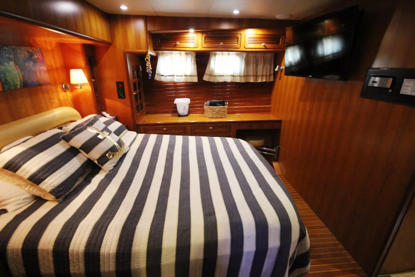 flatscreen TV. The stateroom has four opening port lights. An ample en-suite