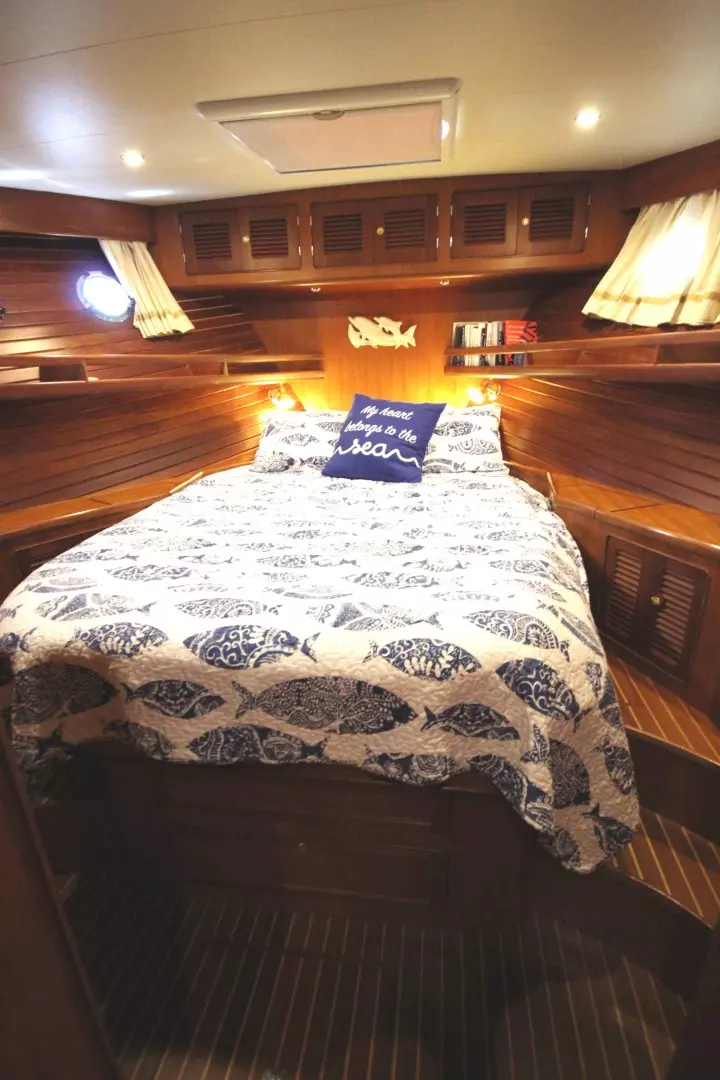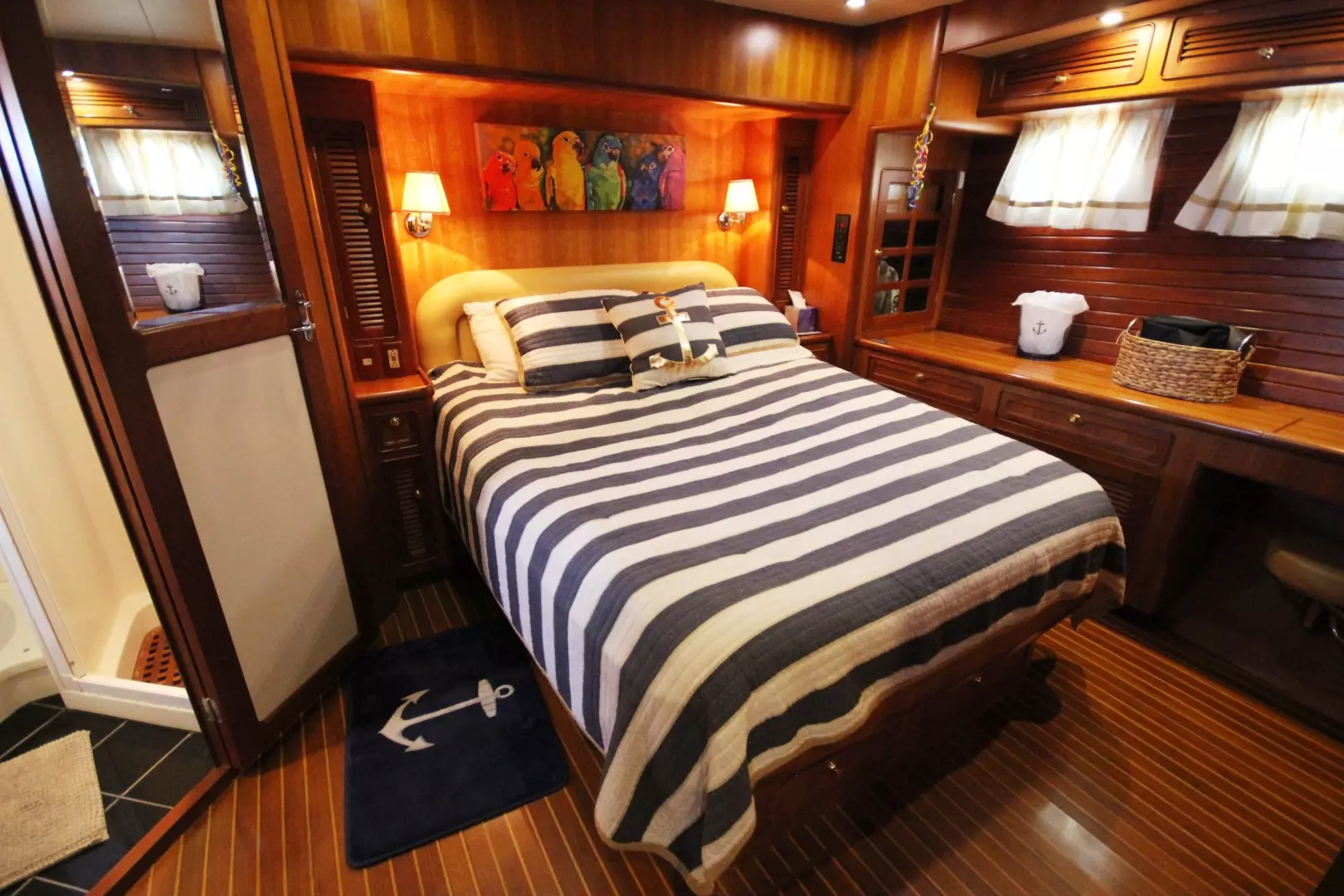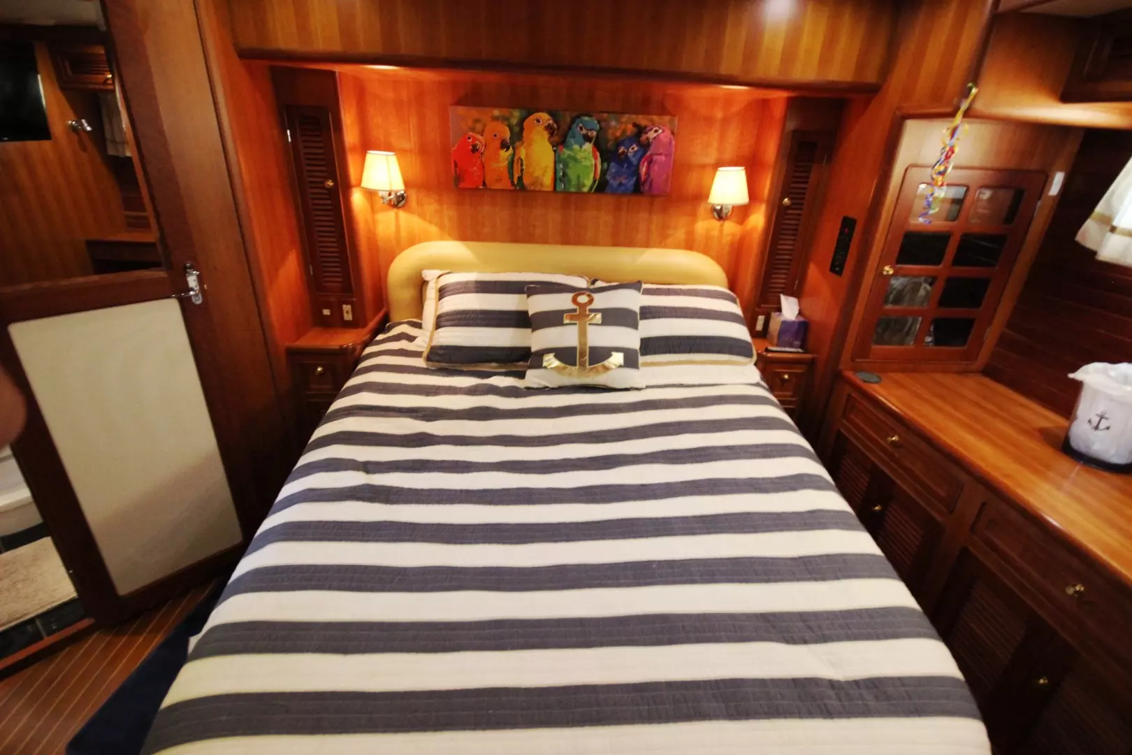 amidships Master Stateroom. A centerline queen berth with a memory foam