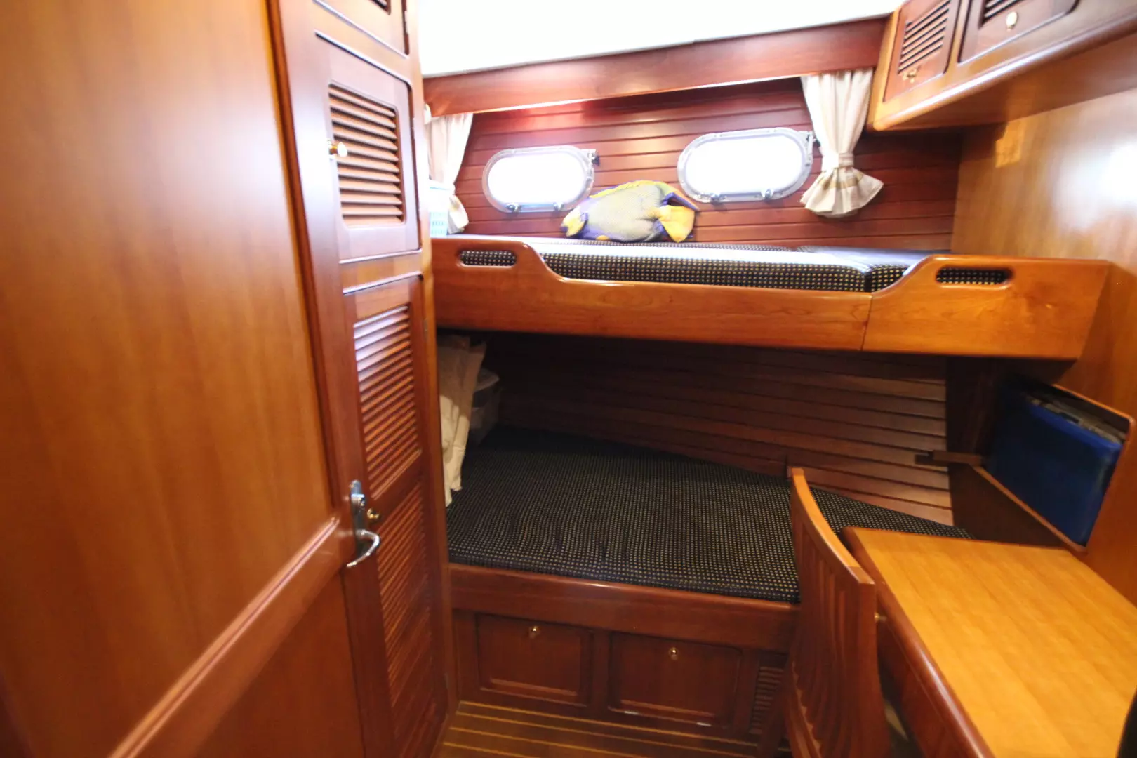 foot of the berth, cedar lined hanging lockers port and starboard and several