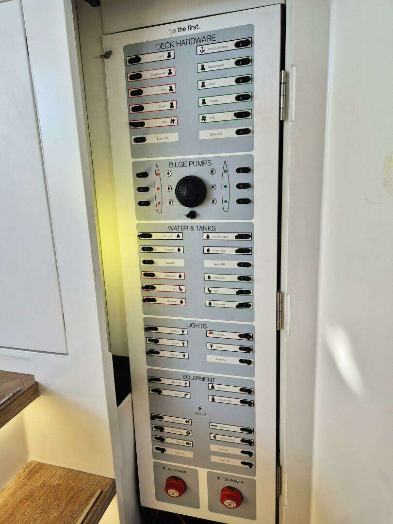- Harken digital system switches (up/down on fore-deck winch for dinghy & 1/2 on other winches)