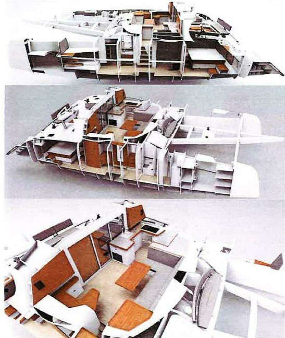 The performance proved to be exceptional: a top speed of 27 knots and consistent cruising speeds between 14 and 17 knots. Thanks to the rotating mast and asymmetrical daggerboards, the boat could sail upwind on par with any monohull.