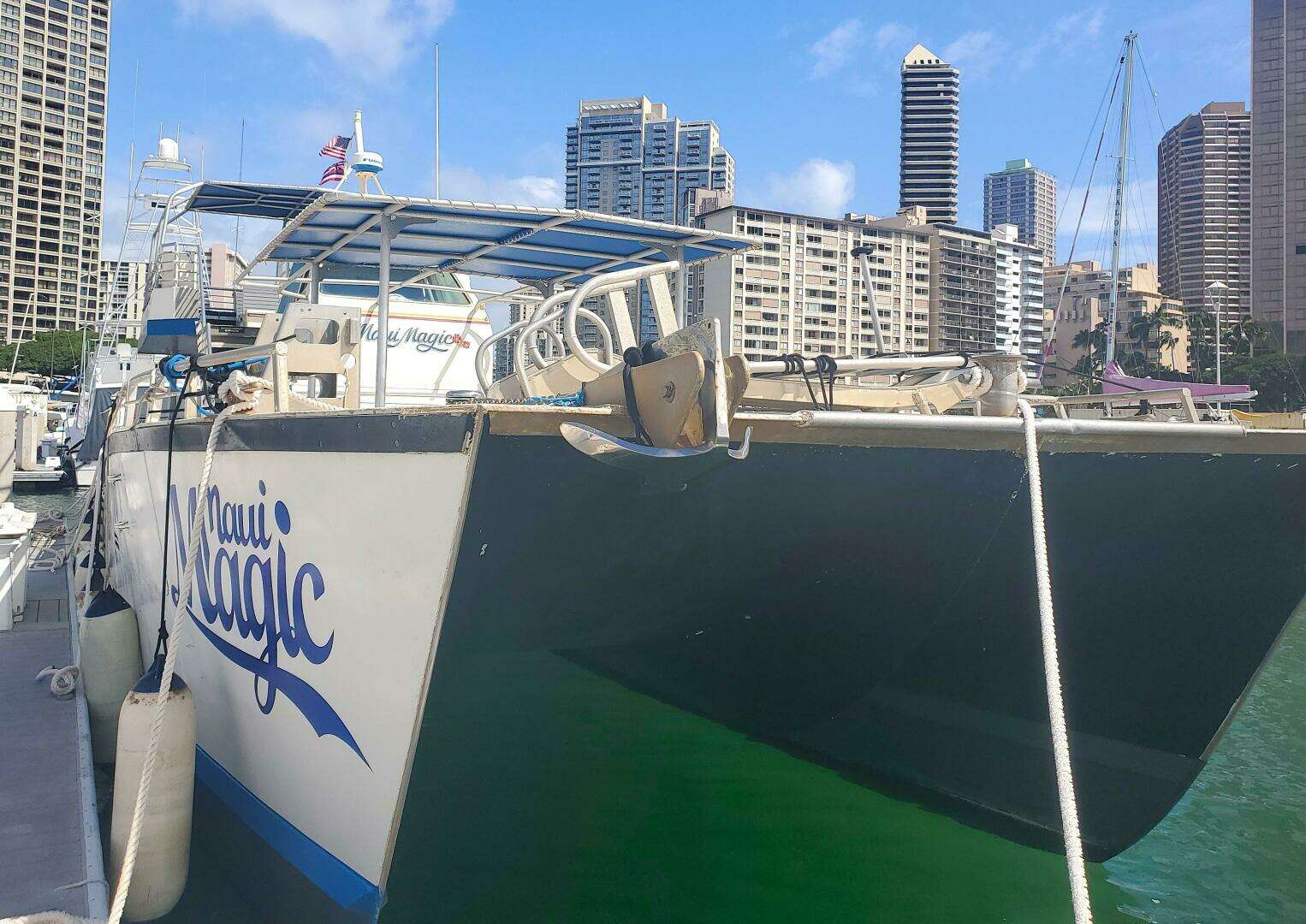 "MAUI MAGIC" is a commercial charter vessel with a USCG COI to carry 74 passengers. Newer Cummins 6CTA 8.3 turbocharged marine diesel engines. Her max speed is 25 knots. Vessel is well maintained and we have a 2022 survey. She is designed for safe, fast, comfortable passages. "MAUI MAGIC" was custom