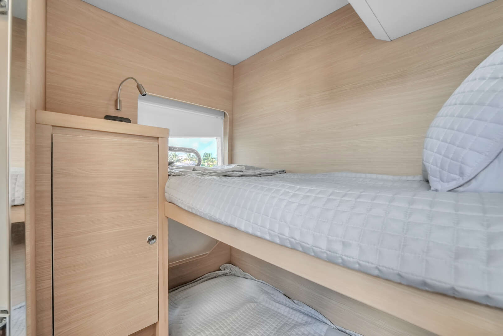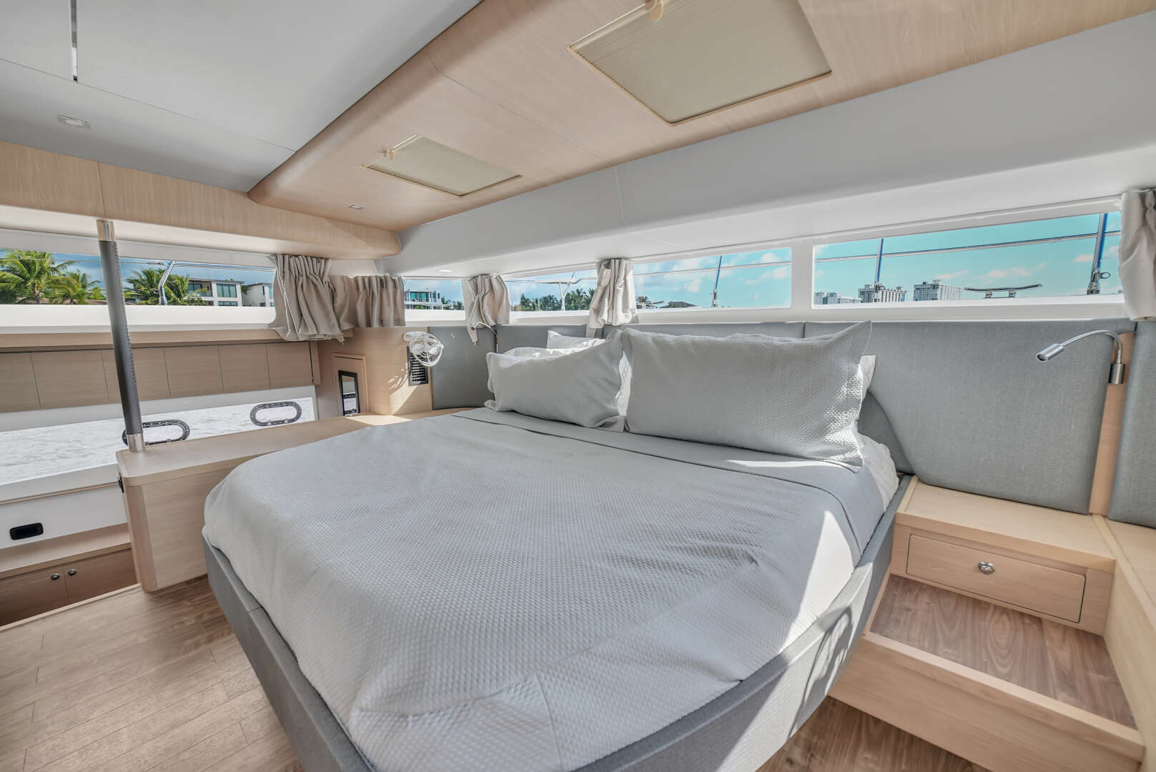 Immaculate 2023 Aquila 54 Yacht featuring just over 600 hours on twin Cummins 550HP engines. This highly optioned 4-cabin, 4-head layout with a galley-up design offers exceptional comfort, luxury, and functionality. The fully enclosed Sky Lounge provides an additional climate-controlled living space with panoramic views—ideal for extended cruising and entertaining.