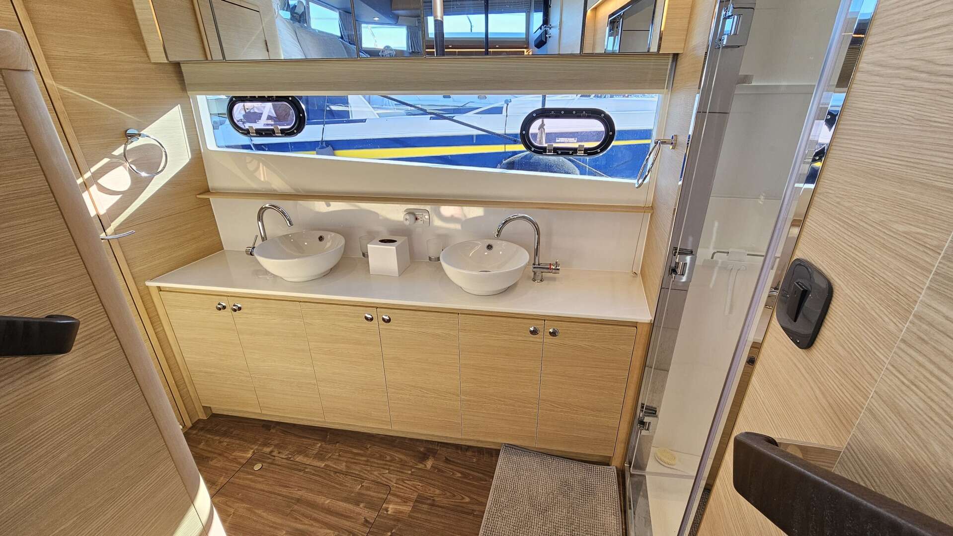 With unmatched stability across its impressive 25'2" beam, this remarkable yacht makes every mile feel like a reward. The panoramic salon with full-size refrigeration and oversized sliding doors flows seamlessly to the expansive cockpit. Above, the flybridge becomes your elevated social hub with multiple seating areas and wet bar. The full-beam master suite offers privacy, while thoughtful touches throughout create a genuine sense of home. With smart navigation systems and Category A ocean certification, the Aquila 54 gives you everything needed to roam farther and feel completely at home along the way.
