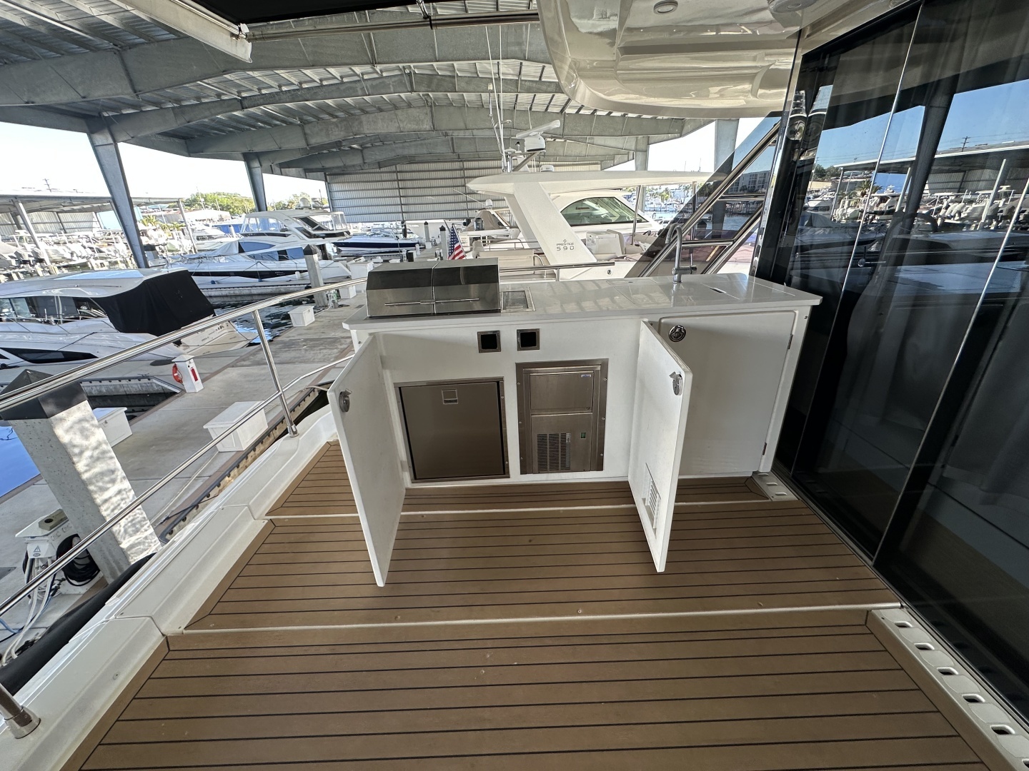 This vessel is loaded with factory options and aftermarket upgrades, including Dockmate wireless control, Starlink connectivity, custom interior/exterior covers, and more—making her truly turnkey.