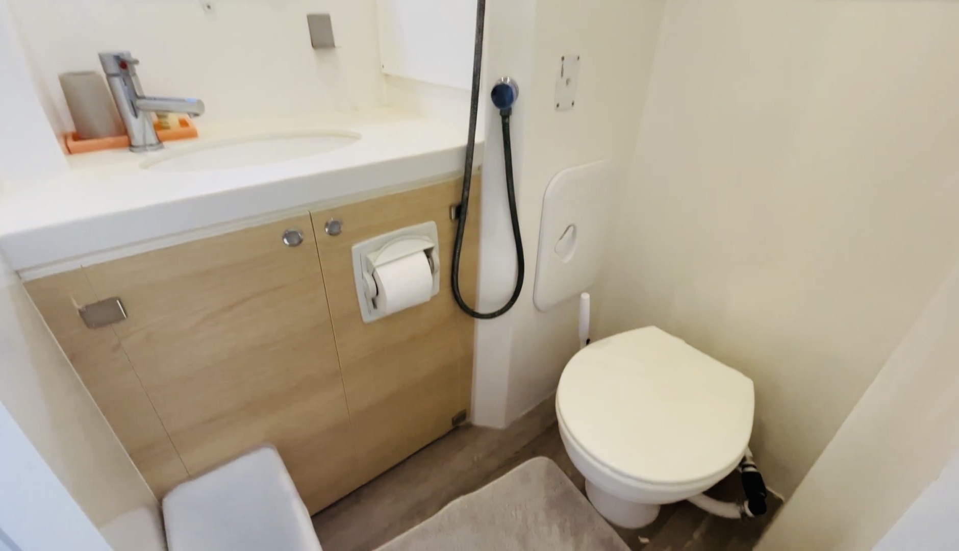 - Electric Jabsco Quiet Flush toilet in all four heads