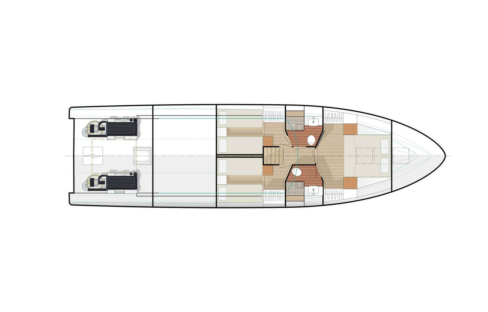 - 3 stateroom, 2 head layout