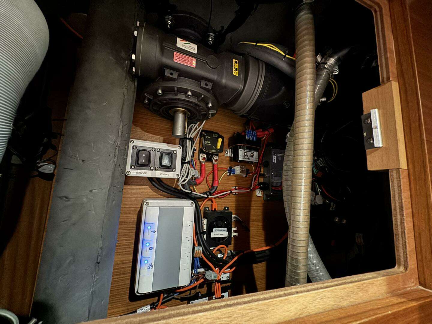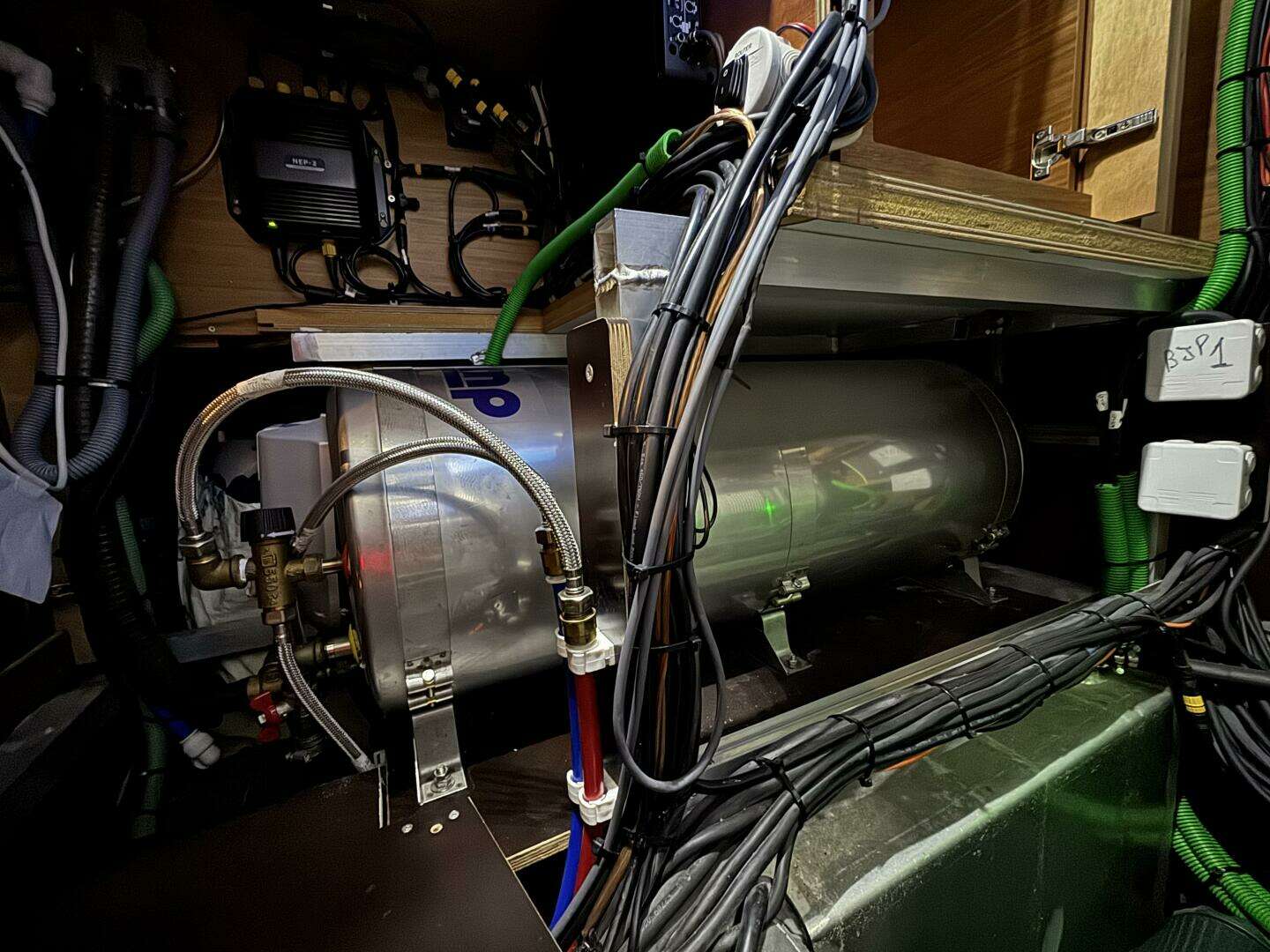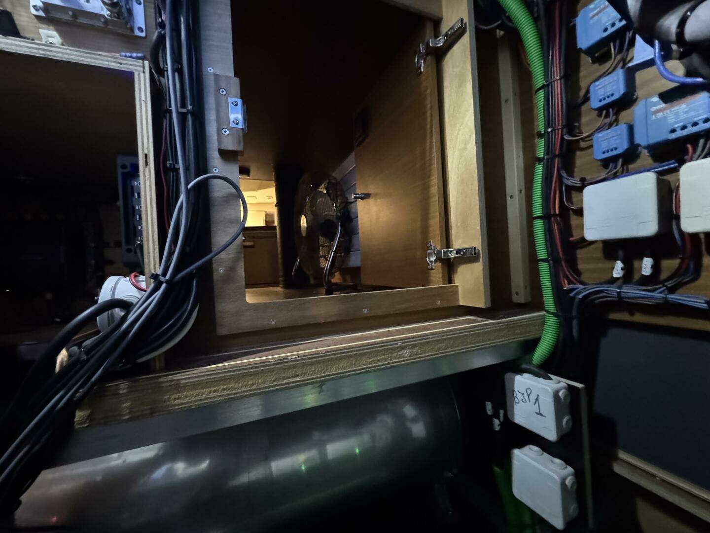 * Radiator at foot of the forward facing nav station. Second radiator in the aft section of the saloon.