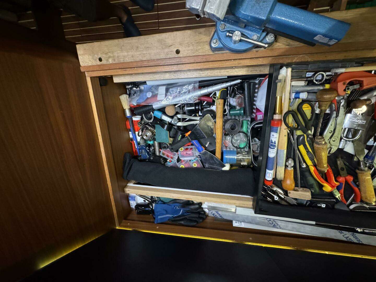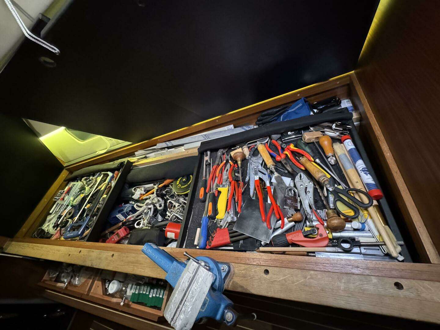 * The very well executed option of tool storage below the work bench will appeal to any voyaging sailor. *Extensive set of high quality tools included.