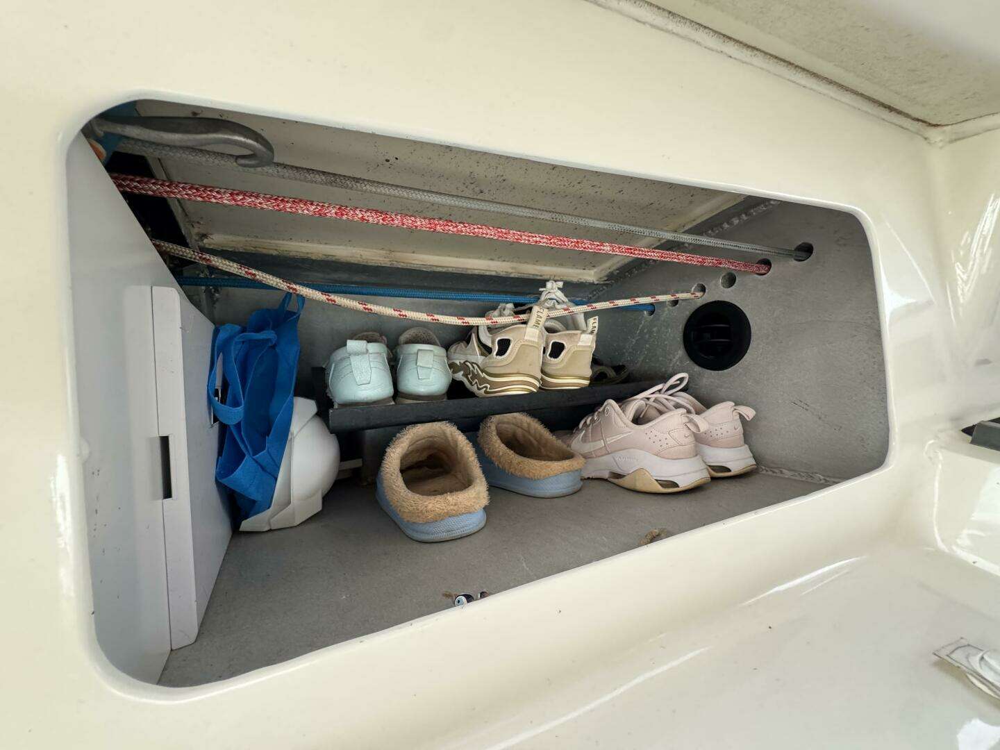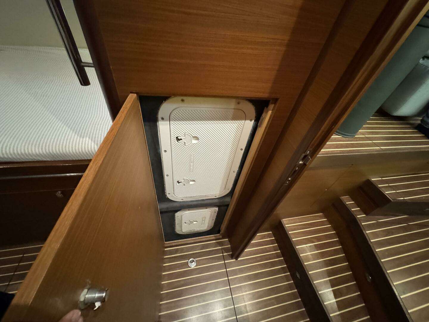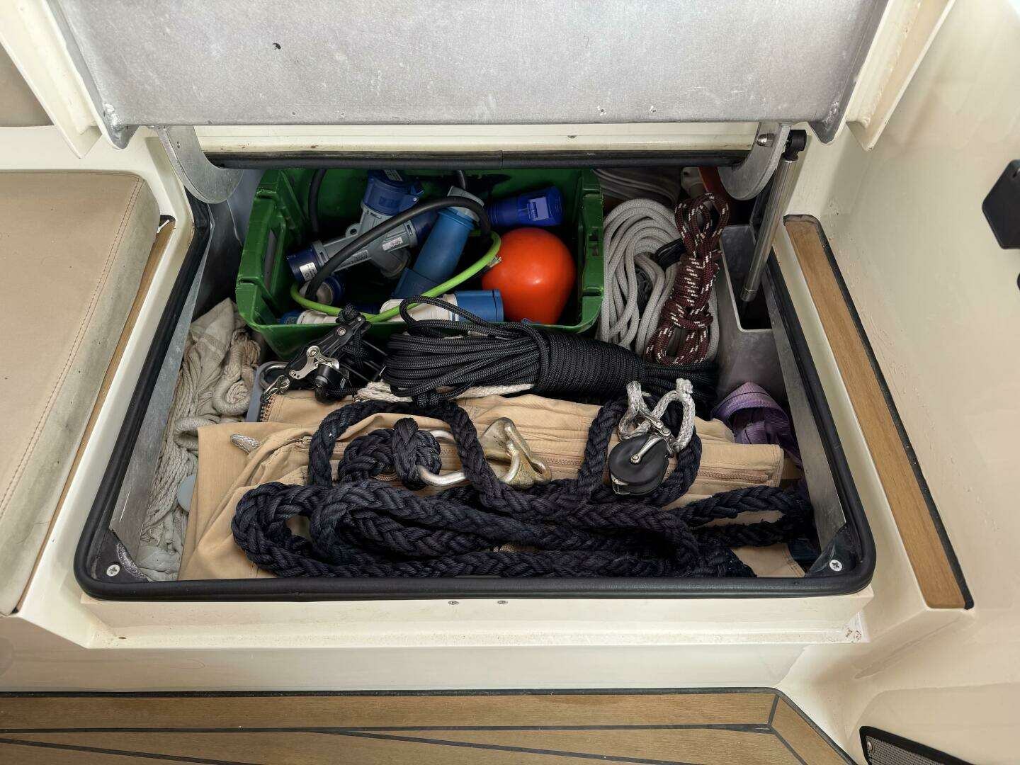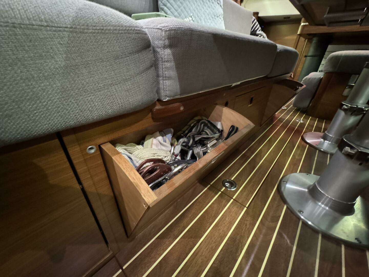 * Storage outboard under the port side deck and under the centerline settee.