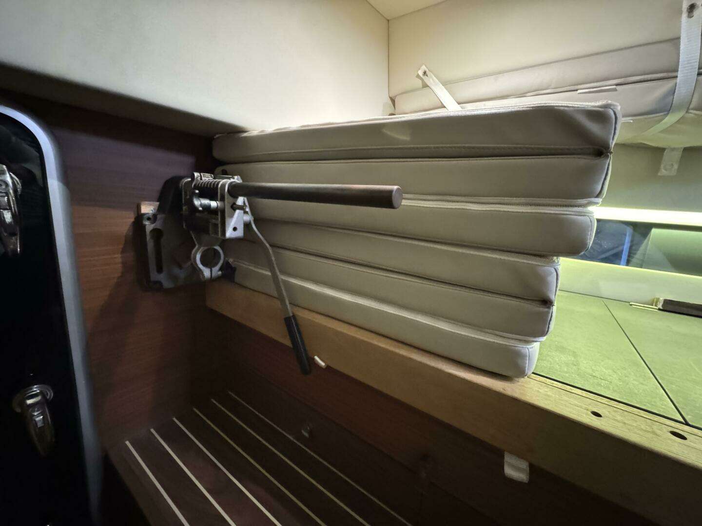 * Fabric upholstered cushions with cushion insert (stored at aft end of workbench) for convertible table. Fabric cushions machine washable