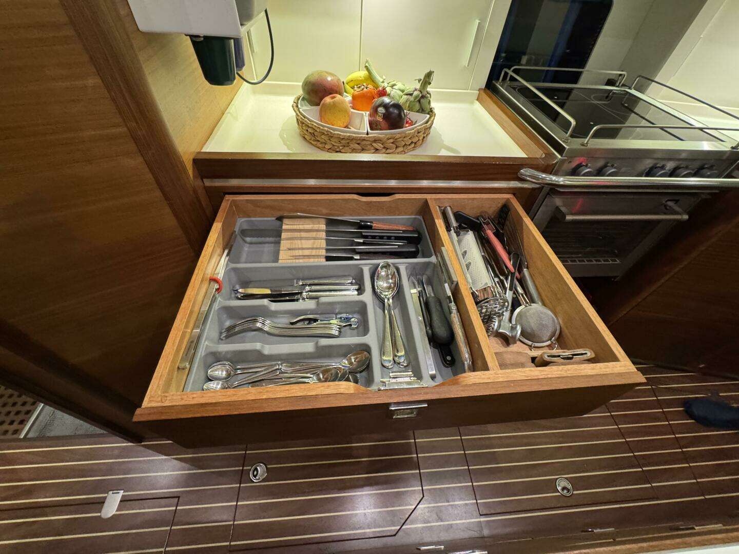 * GN Espace Gastronorm sink with accessories usable in the GN Espace oven. There is also a second small prep sink just aft of the main sink.