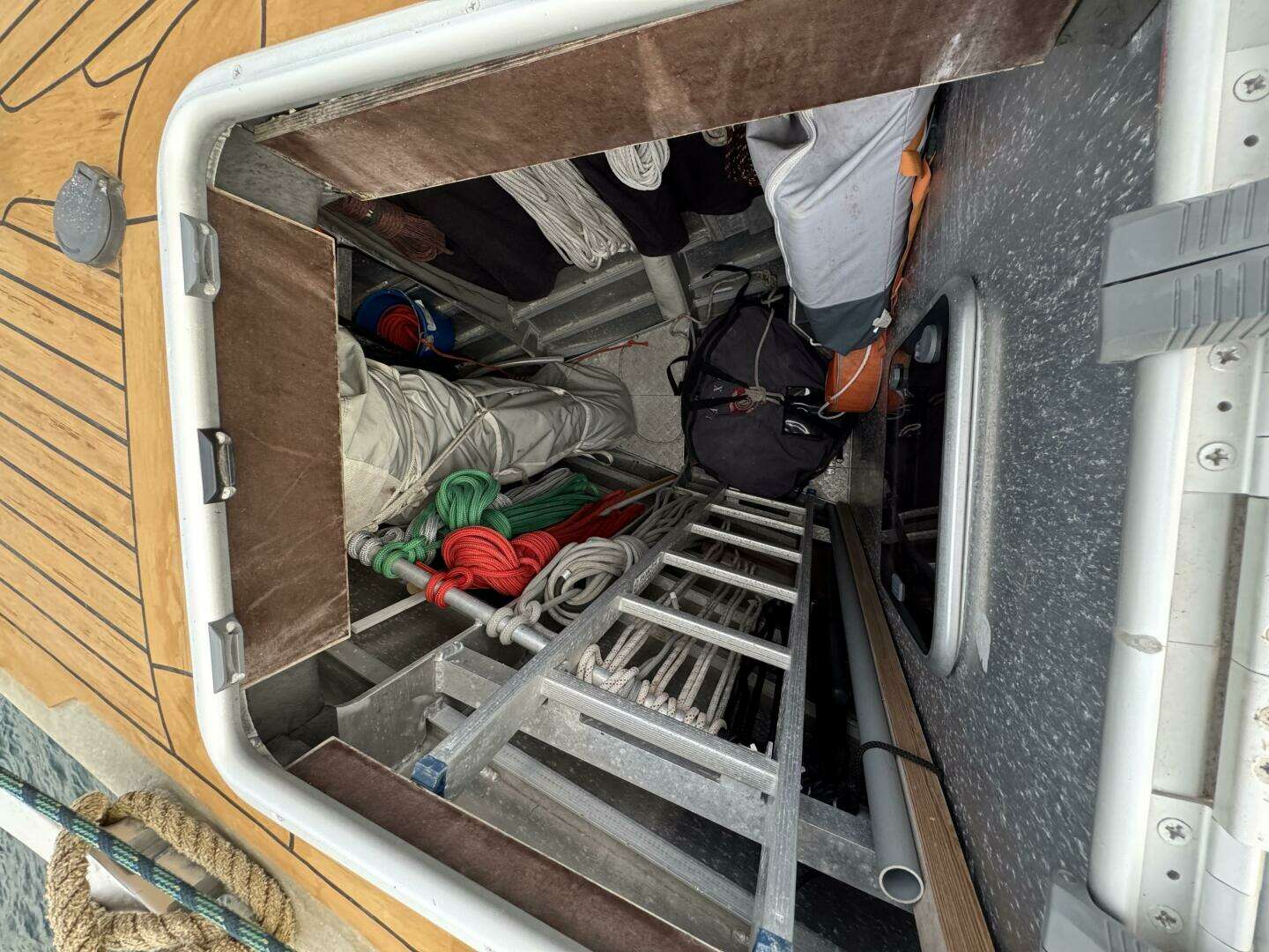 The owner’s head has an access hatch to the forepeak/sail locker.