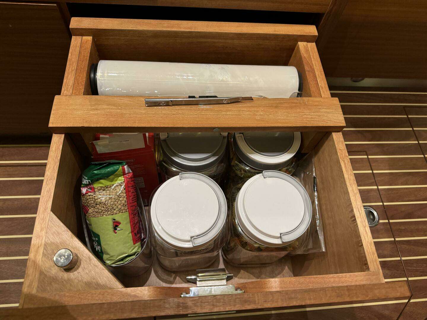 * The large berth directly under the saloon table has been converted into copious storage.