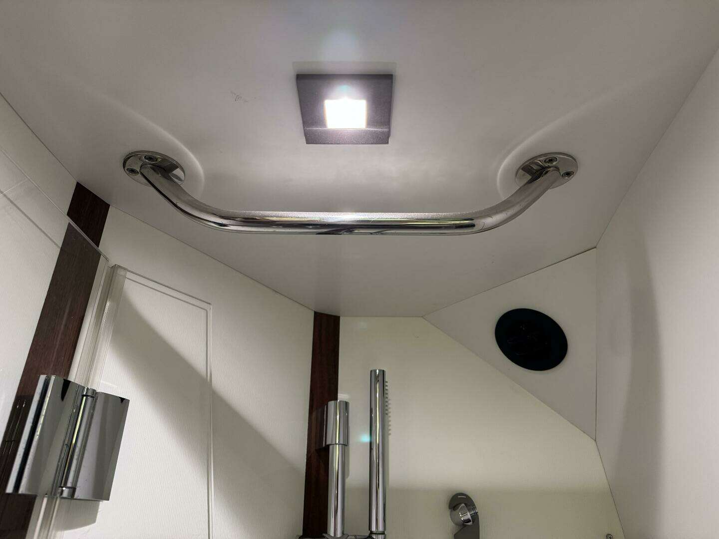 * Wet gear hanging locker outboard of the stall shower with hot air ventilation.