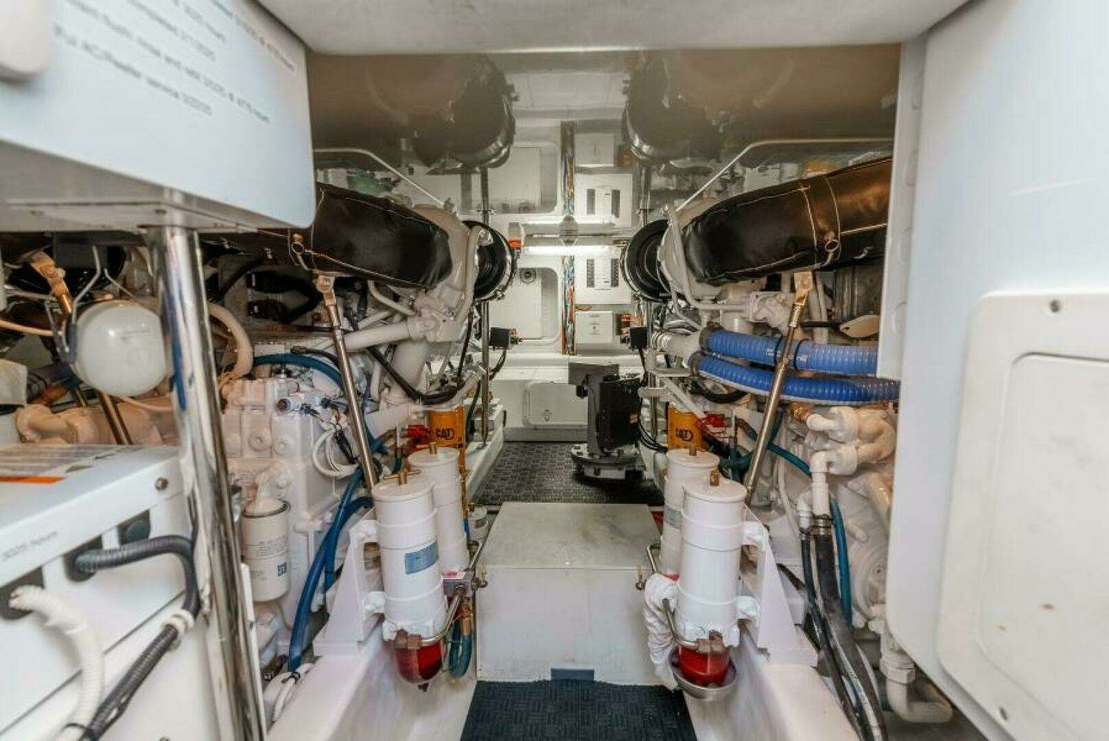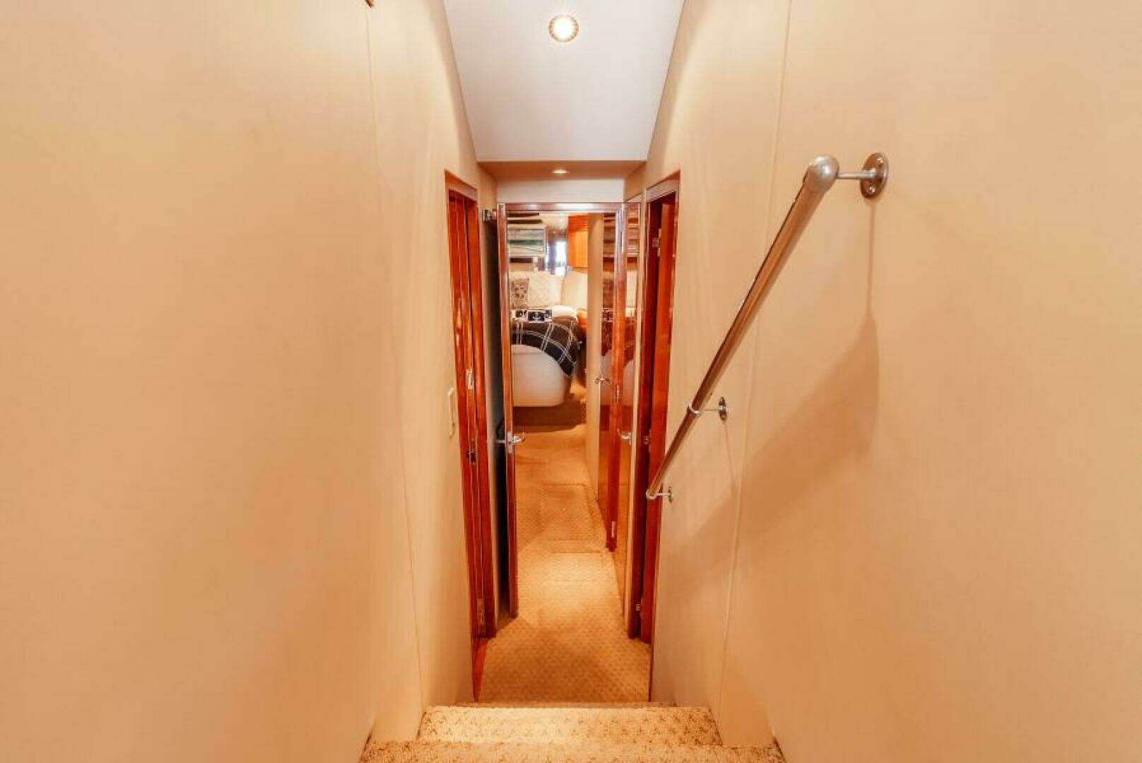 The interior of the 2004 Hatteras 54 Convertible is the epitome of elegance and function. Below deck, the yacht features a luxurious, well-appointed salon with large windows that bathe the space in natural light. Polished wood finishes, soft leather upholstery, and designer fixtures provide an inviting and upscale atmosphere. Whether you're chasing fish offshore or enjoying a weekend getaway, the Hatteras 54 Convertible excels at offering versatility and luxury. This yacht is perfect for the owner who seeks a blend of performance, comfort, and style.