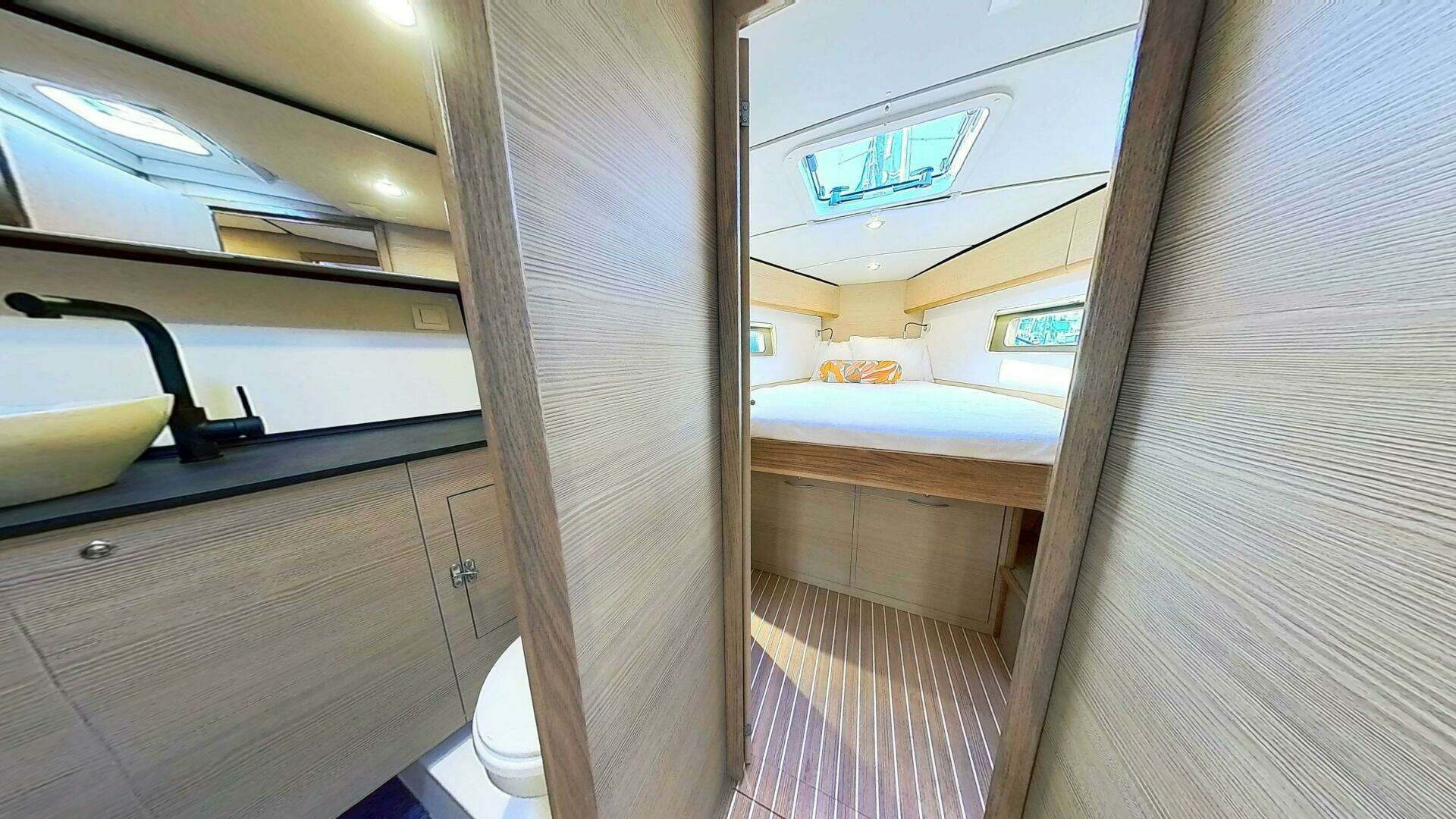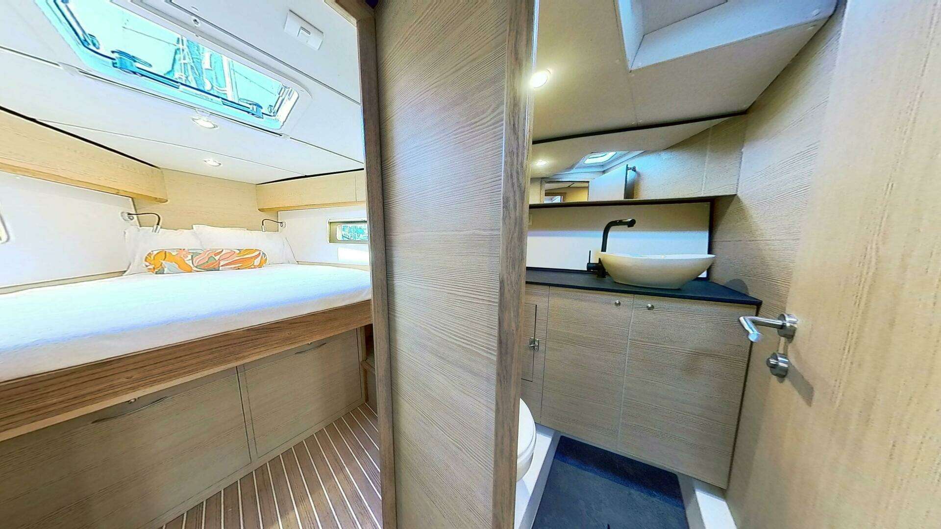 The Kufner 54 sailboat is a masterstroke of naval engineering, meticulously crafted from top-of-the-line materials. Its deck plan embodies ingenuity, boasting an expansive teak deck that beautifully balances leisure and sailing needs. Below deck, the Kufner 54 hosts a spacious galley forward, offering ample storage, a well-designed living area, five luxurious cabins with two en-suite heads (4 total).