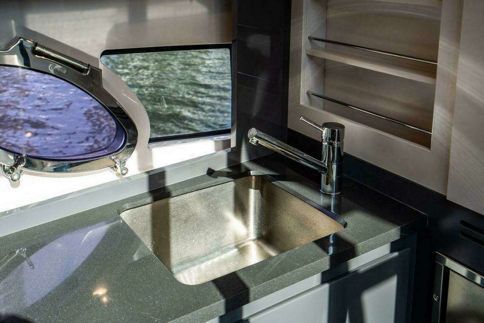 The 5X is the first Pershing below 60 feet where the owner can enjoy a full-beam master suite with an en-suite bathroom and a dinette in front of the galley.