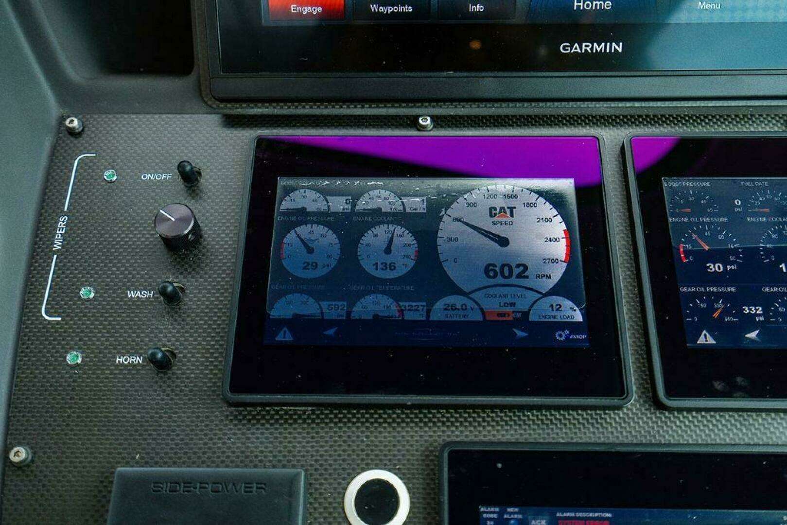 She is powered by upgraded 1000hp Caterpillar engines with low hours and has Surface Drives, which deliver the highest velocity along with sleek, aggressive handling on the water.