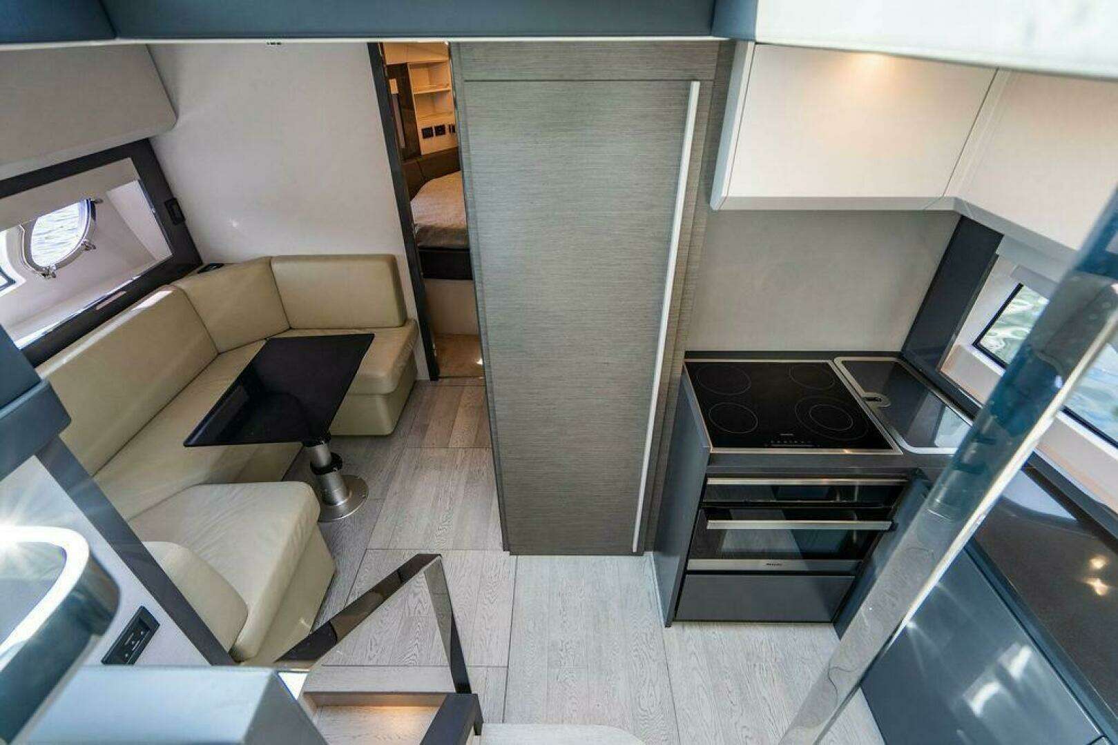 A possible alternative is that the VIP cabin, equipped with bathroom that can be used as day head - and a dinette facing the galley.