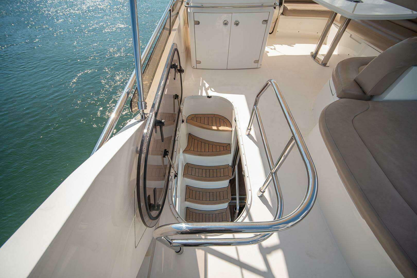 - Teak-laid transom platform/cockpit deck/flybridge stairway/