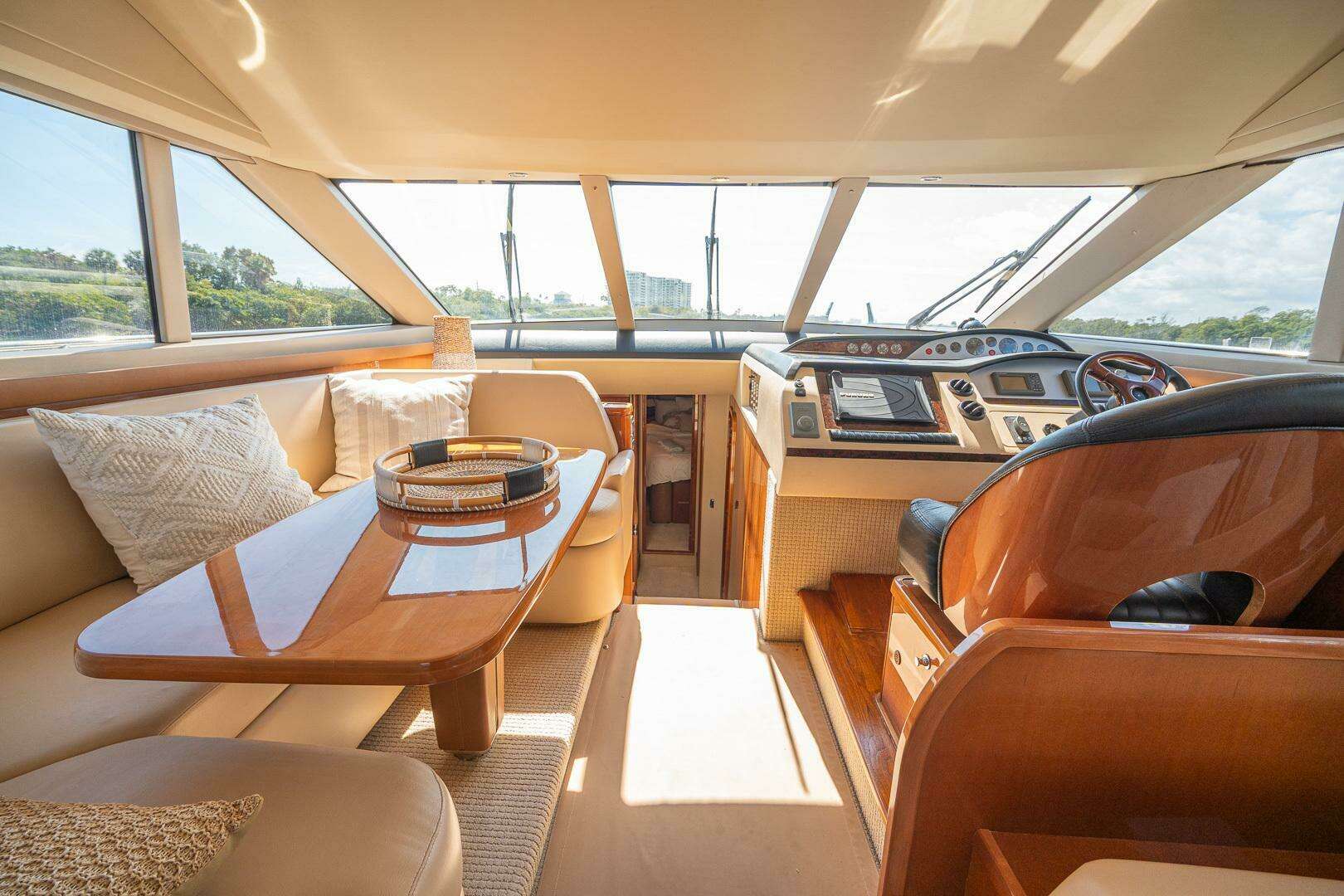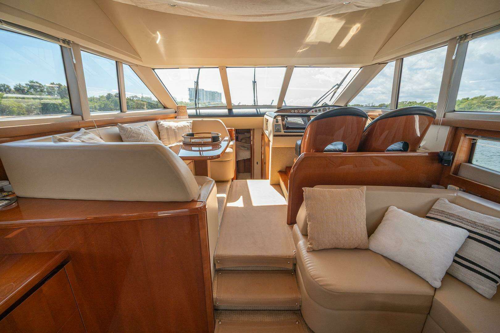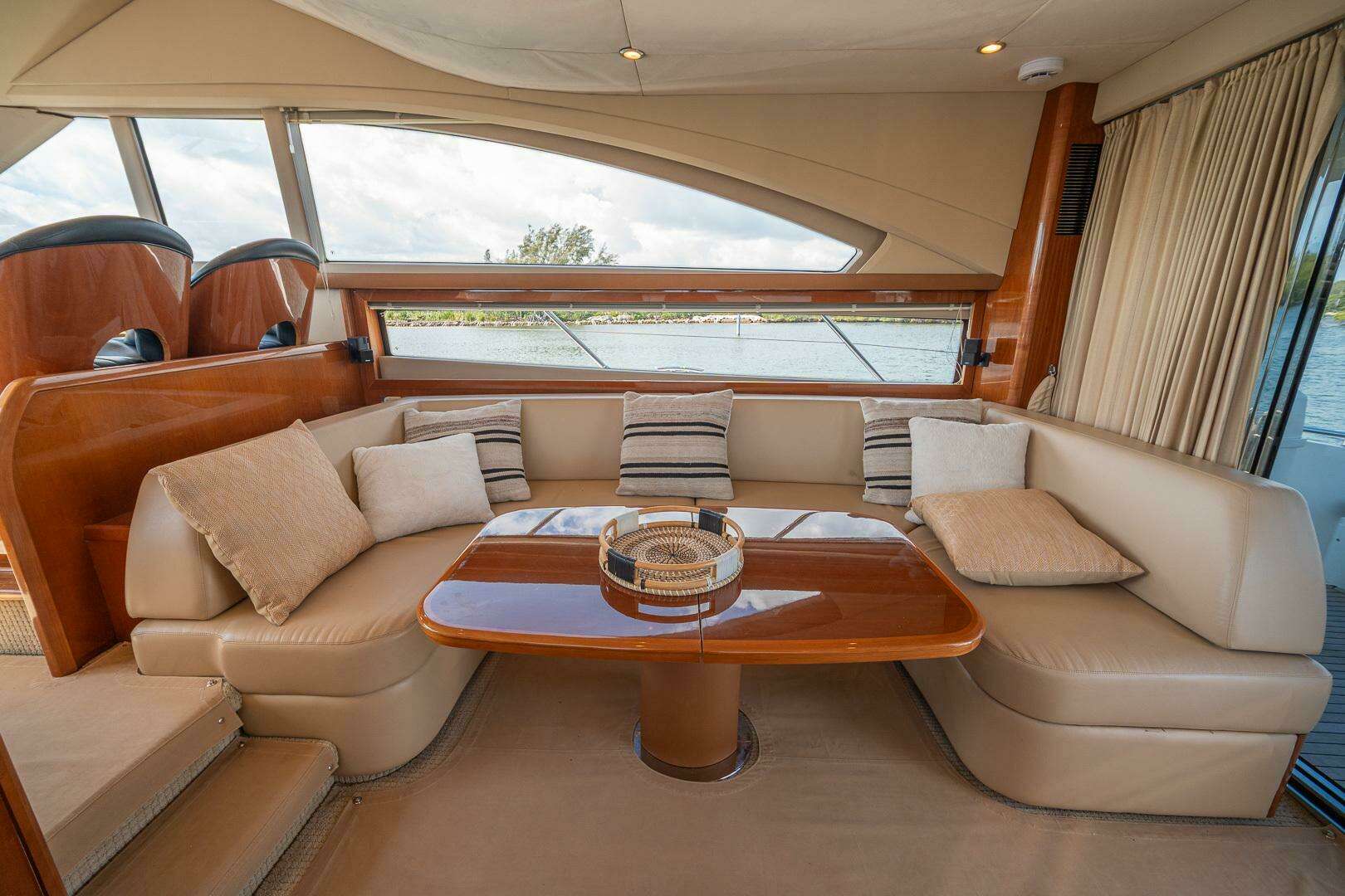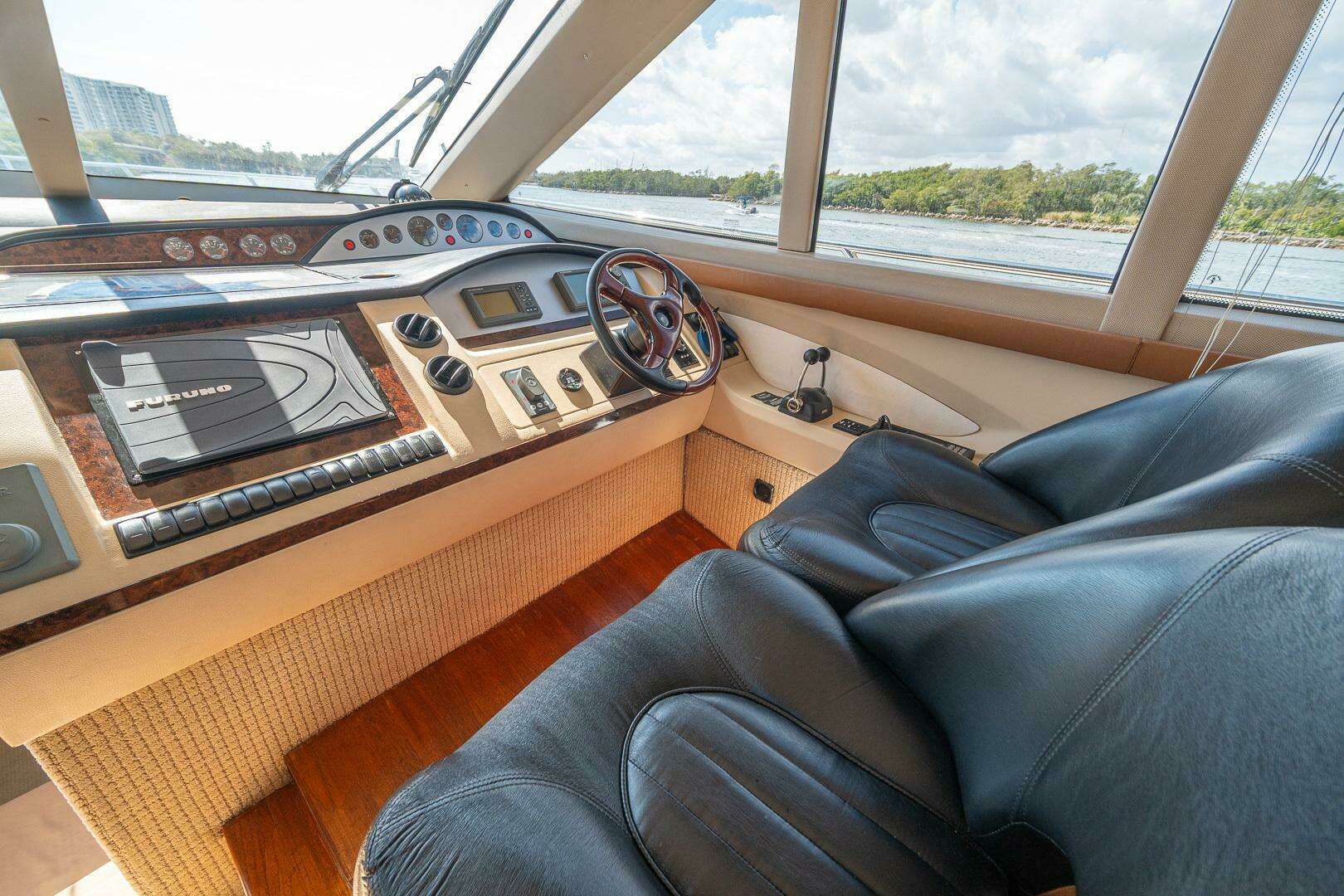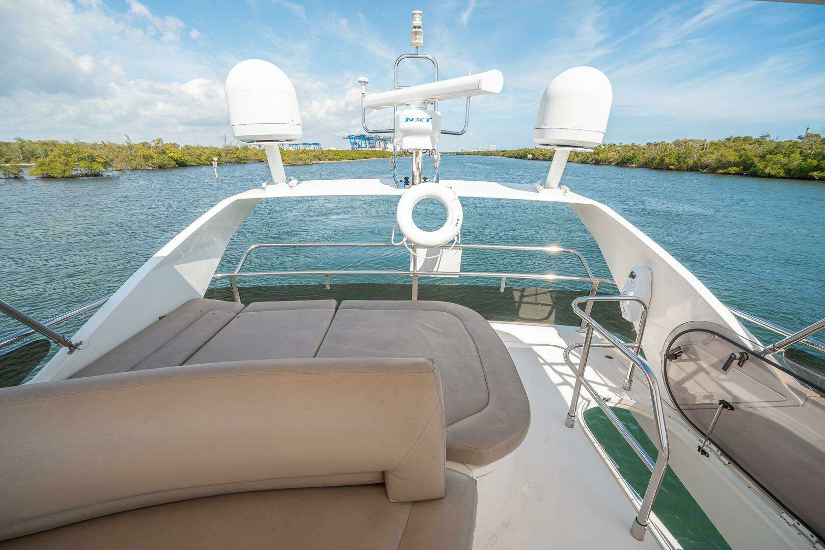 AHDORNED is a 2009 Viking-Princess Yachts 54 Flybridge powered by twin Volvo D12-800 engines producing 775 horsepower each and propelling her to a top speed of 34 knots.