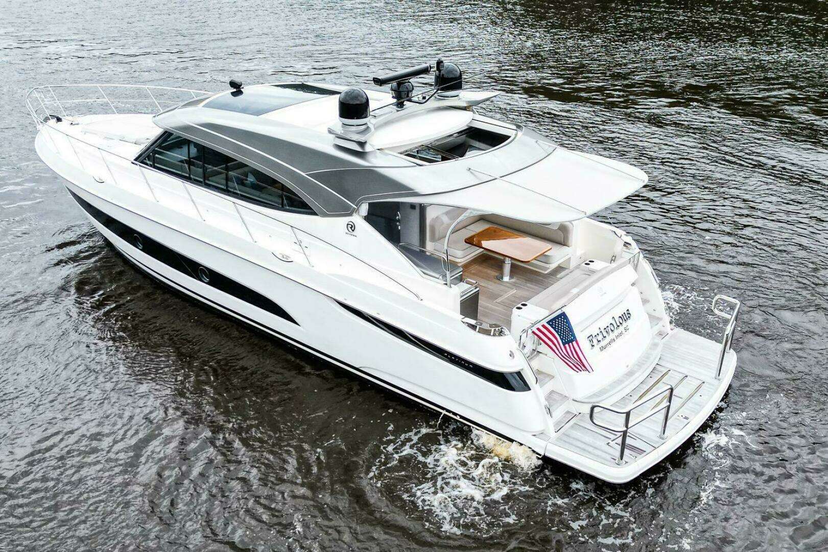 This 2021 Riviera 5400 Sport Yacht “Frivolous"’ presents the perfect fusion of luxury, innovation, and performance. Designed to impress, this yacht is equipped with a Seakeeper Gyro for exceptional stability, a Brig 330 Falcon tender with a Honda 20HP engine for seamless exploration, and a tropical air conditioning package to keep you comfortable in any climate. The interior features stunning high-gloss walnut joinery, a custom Corian waterfall galley countertop, and electric blinds in the salon and master cabin, highlighting its refined craftsmanship and attention to detail. Cutting-edge electronics, including a full Volvo Glass Cockpit with Garmin MFDs, a Garmin GMR 54 Fantom open array radar, and Volvo joystick docking with DPS to ensure effortless navigation and enhanced safety. Additional highlights like underwater LED lighting, upgraded Sunbrella exterior fabrics, and a versatile three-cabin layout make this Riviera 5400 Sport Yacht the ultimate choice for those seeking style, comfort, and world-class performance on the water.