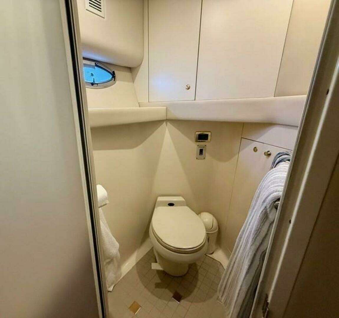 Below, the Sea Ray 540 offers a three-stateroom, two-head layout that easily accommodates six overnight guests. The full-beam master stateroom is located aft, separated from the other cabins for maximum privacy. It includes an en suite head, generous closet space, and in many models, a washer/dryer unit for added convenience. Forward, the VIP stateroom features a centerline queen berth and elegant cabinetry, while the third stateroom offers versatile sleeping arrangements for guests or crew.