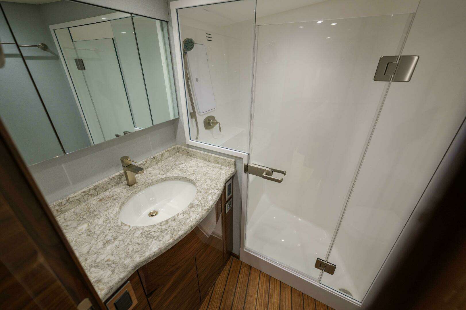 - Aft lazarette- Seakeeper SK18 as well as the steering, trim tabs, and drain pumps.