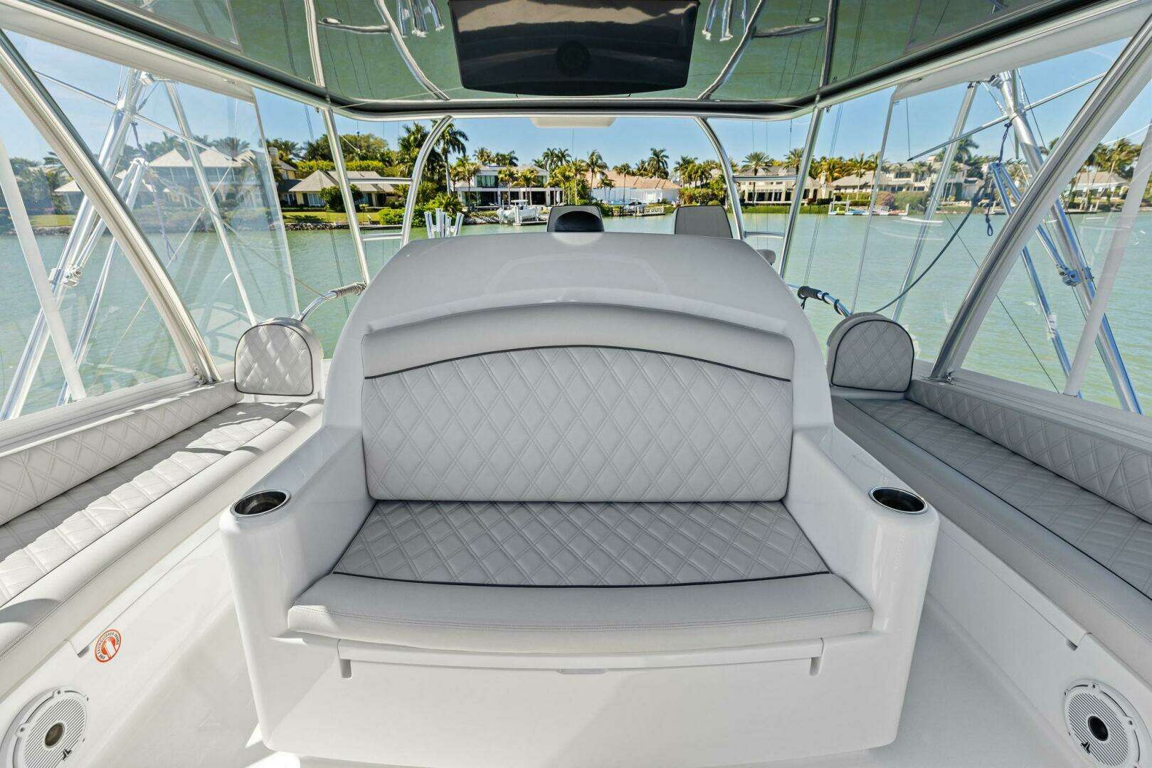 Equipped with an extensive tournament-ready electronics package by Atlantic Marine Electronics, she delivers the navigation and sonar capabilities competitive crews rely on. Custom molded stairs lead to the Flybridge and a Palm Beach Towers hardtop provides visibility, fishability, and overall presence on the water. The addition of a Seakeeper SK18 gyrostabilizer further enhances onboard comfort and overall stability offshore.