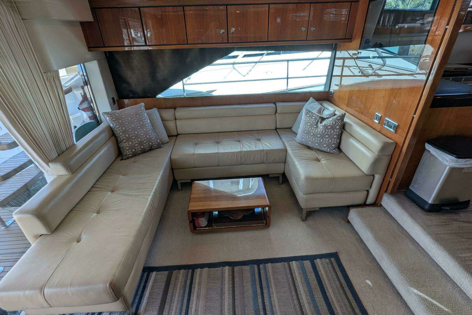 Exiting through stainless-steel sliding doors takes you out onto a spacious cockpit with a teak sole, and comfortable transom seating, beneath which is a captain's cabin that can also be used for storage.