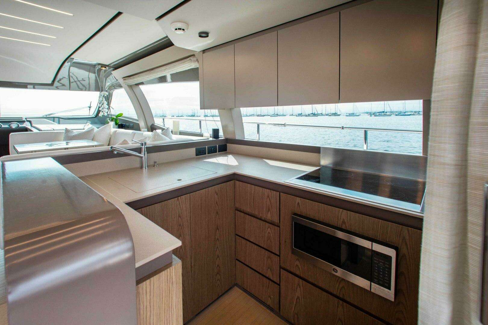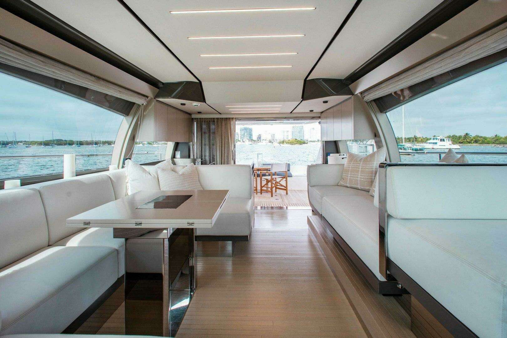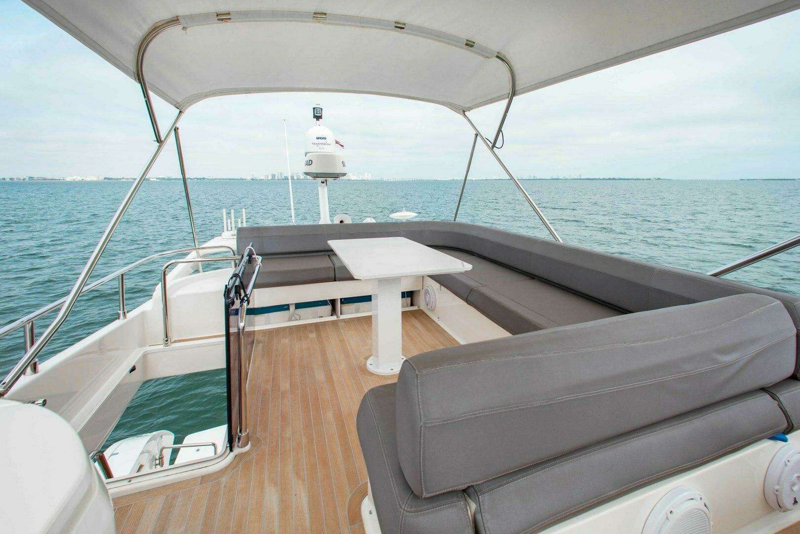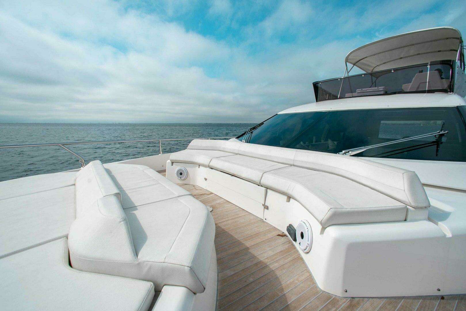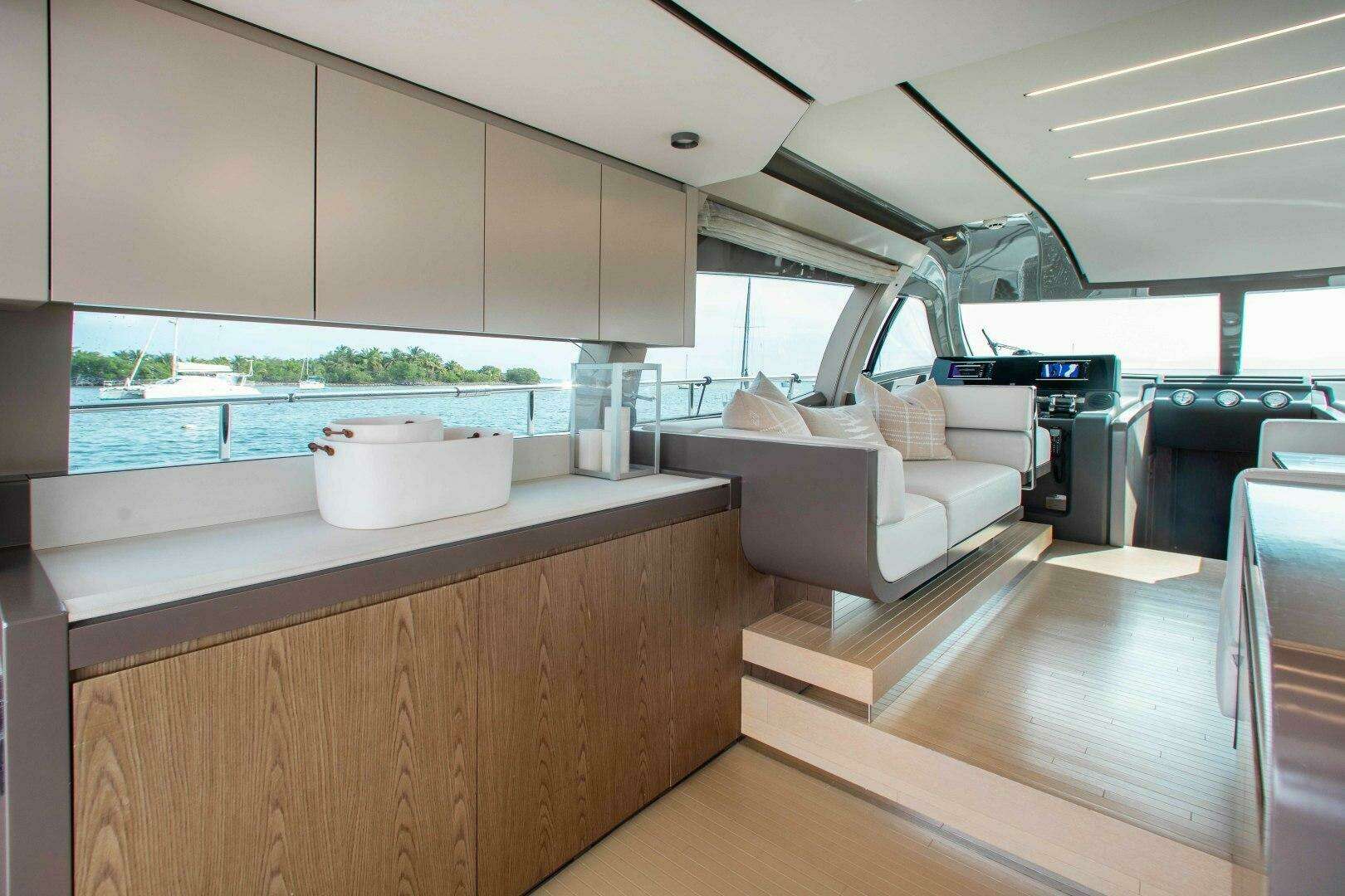 ACQUA accommodates six guests in three spacious staterooms. The yacht has a “just like home feel” with a comfortable sofa, tasteful interior color and soft goods. The outside boasts multiple lounge areas, flybridge and foredeck. The yacht also has an upgraded JL Audio system throughout the vessel, excellent for entertaining family and friends.