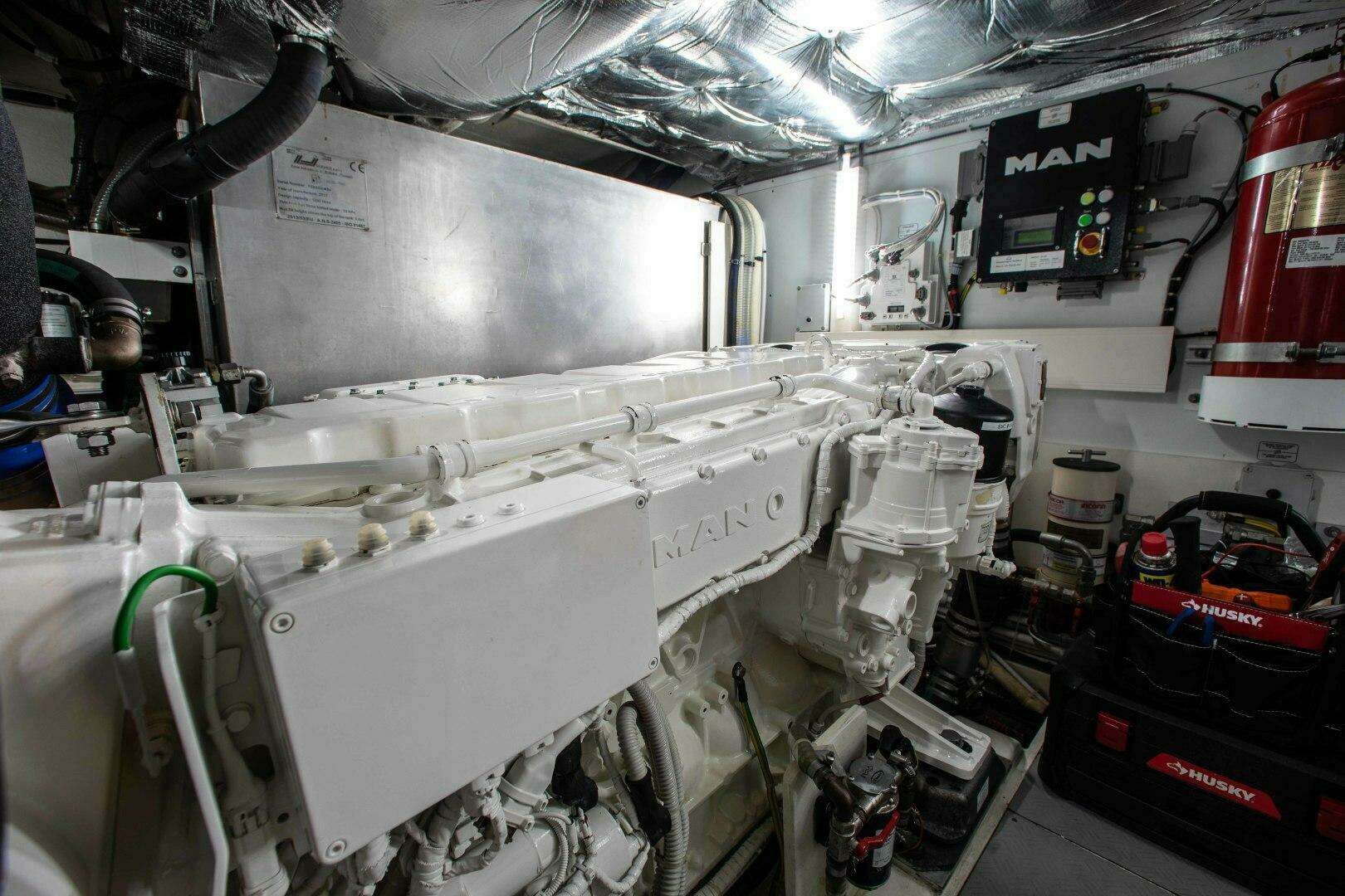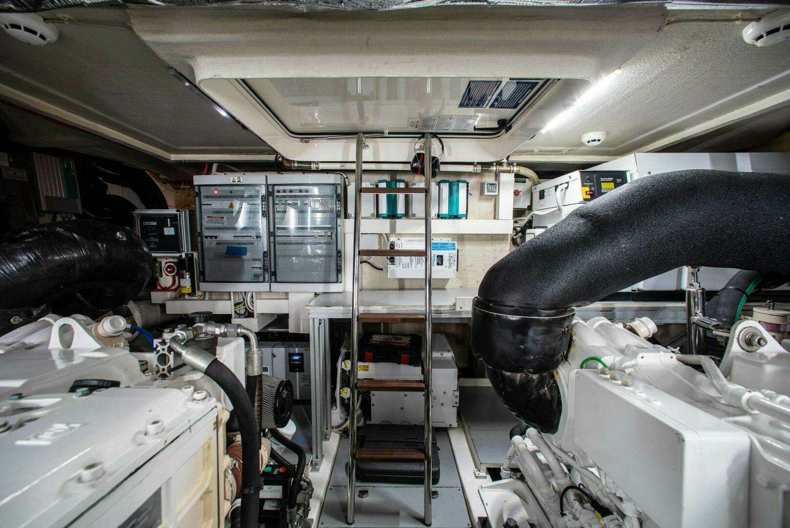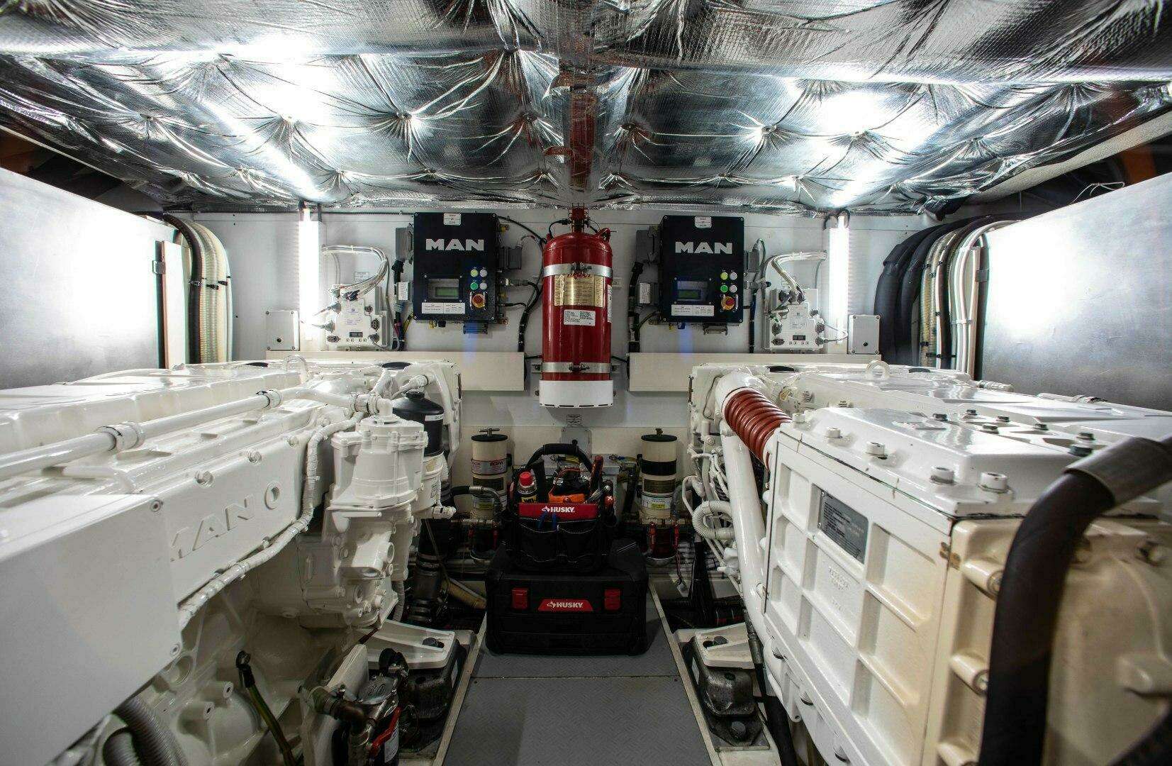 - Access to the engine room through a hatch and a stainless steel and teak ladder