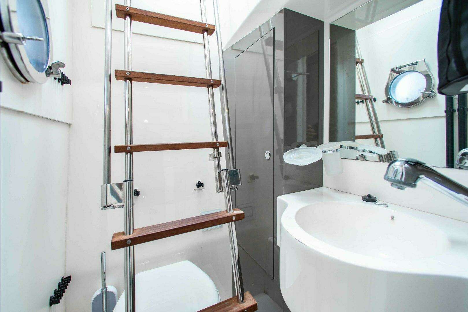 - Access to the storage area (crew cabin) through stainless steel and teak steps
