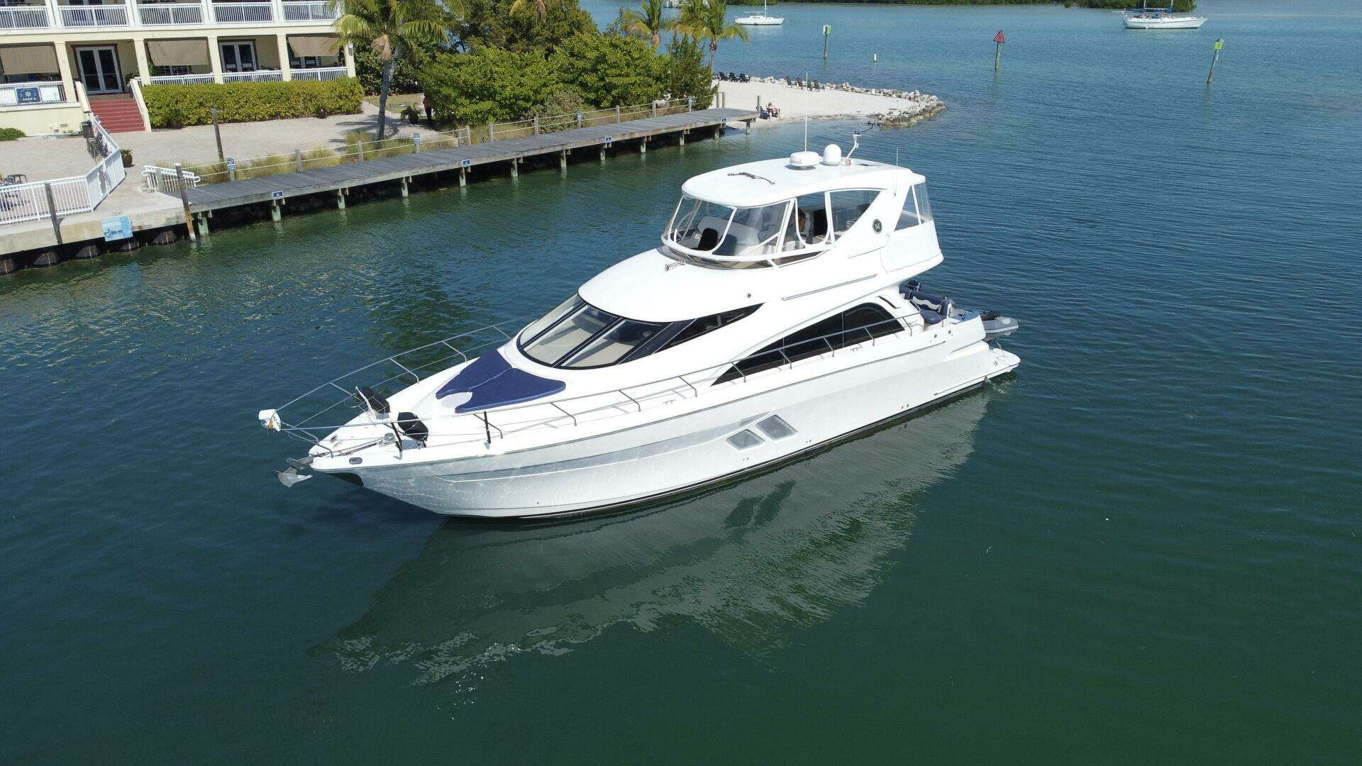 The 2007 Marquis 55 Motor Yacht Salty Side Eye blends Italian Nuvolari-Lenard design with American craftsmanship. Powered by twin Volvo D12 800HP diesels, she features a full-beam master, expansive flybridge, new Garmin electronics, Starlink, and numerous 2024–2025 upgrades including new engine turb