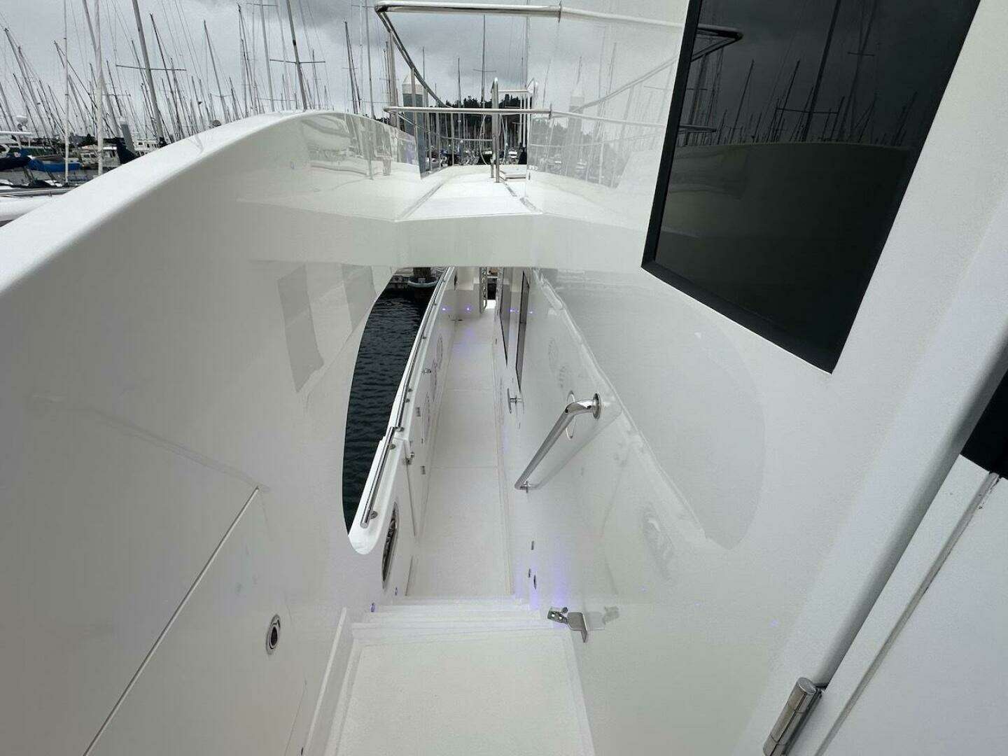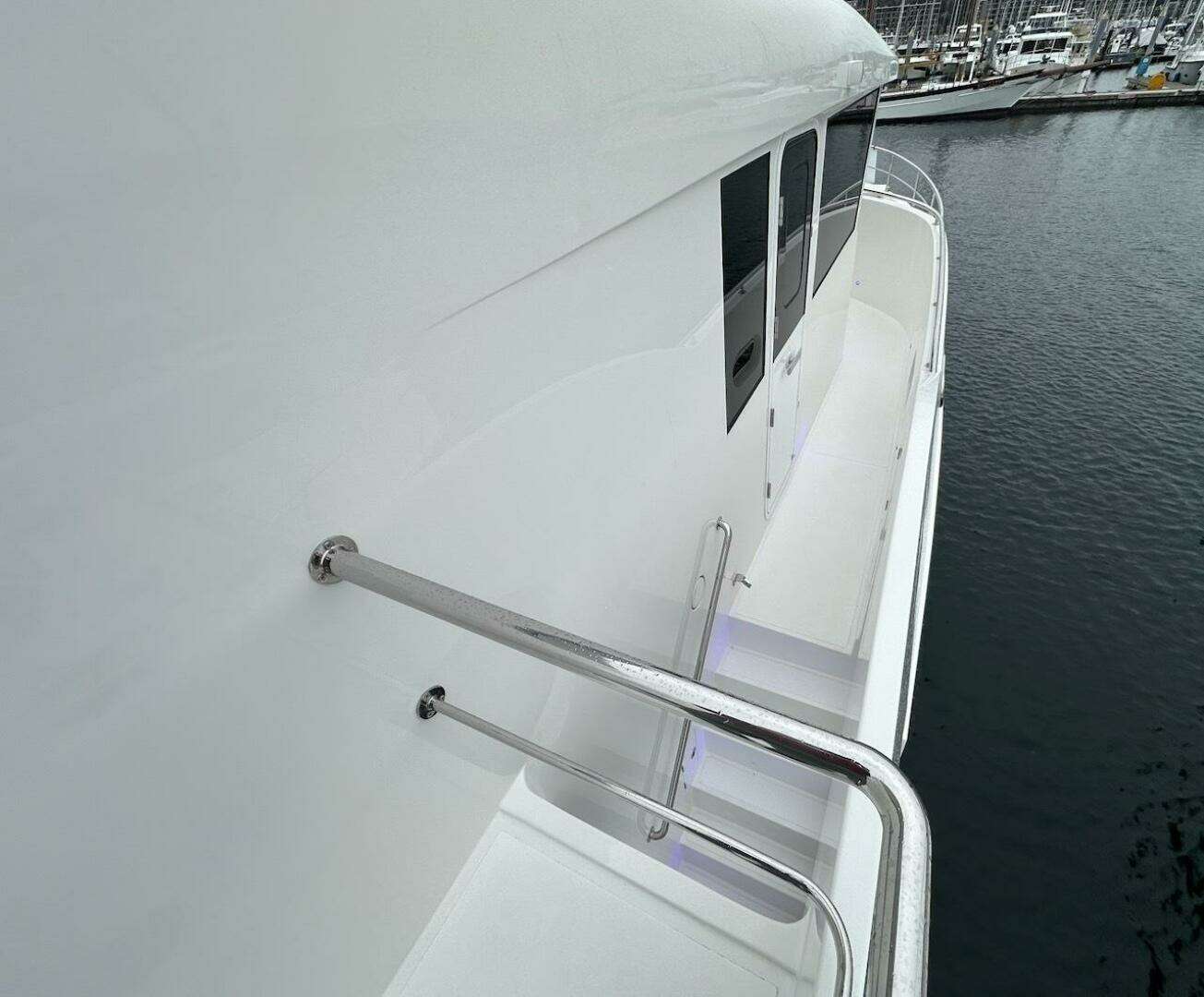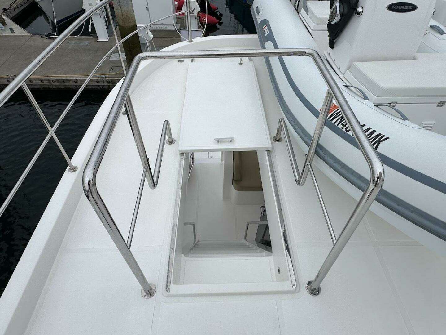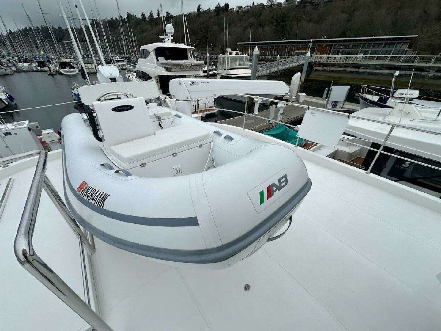| Notable Upgrades: John Deere 330HP diesel power, Wesmar bow & stern thrusters, Garmin navigation system, Wesmar stabilizing system, air-conditioning and heat, steelhead power rotation davit and a Bullfrog 11.5' yacht tender. |