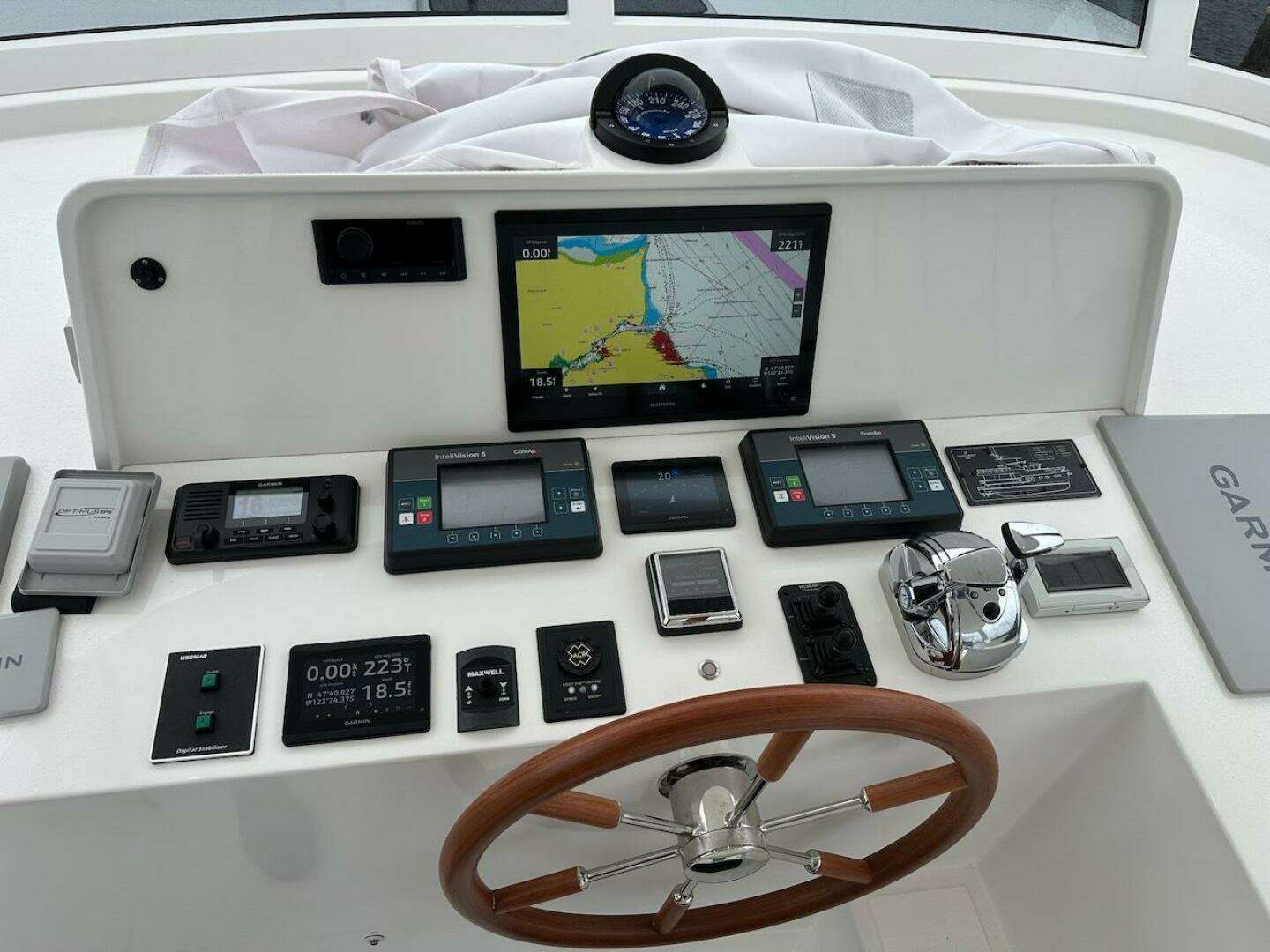 - Garmin suite of electronics, including 2 x 16 inch displays on lower helm