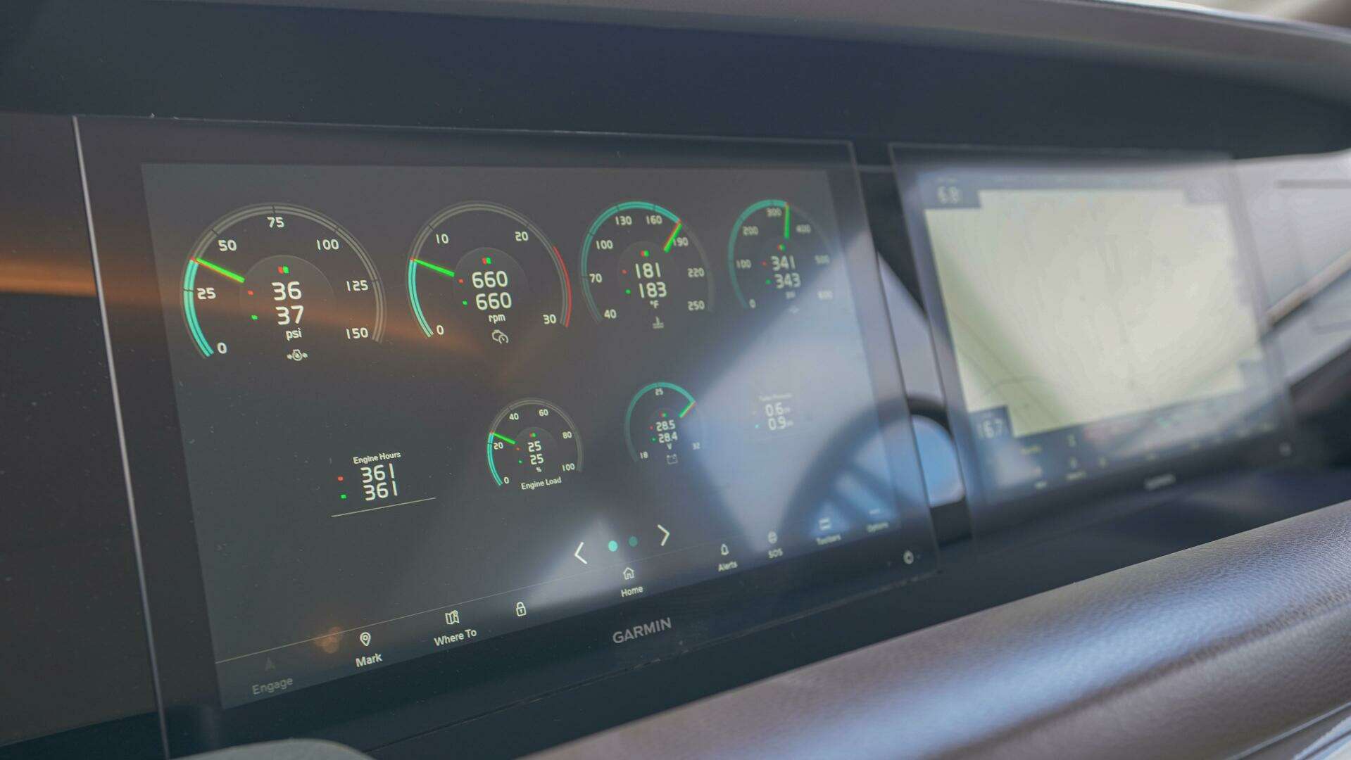 - Garmin (GMI 20 4") multifunction display at lower helm (for separate display and control of individual functions e.g. log and echo sounder)