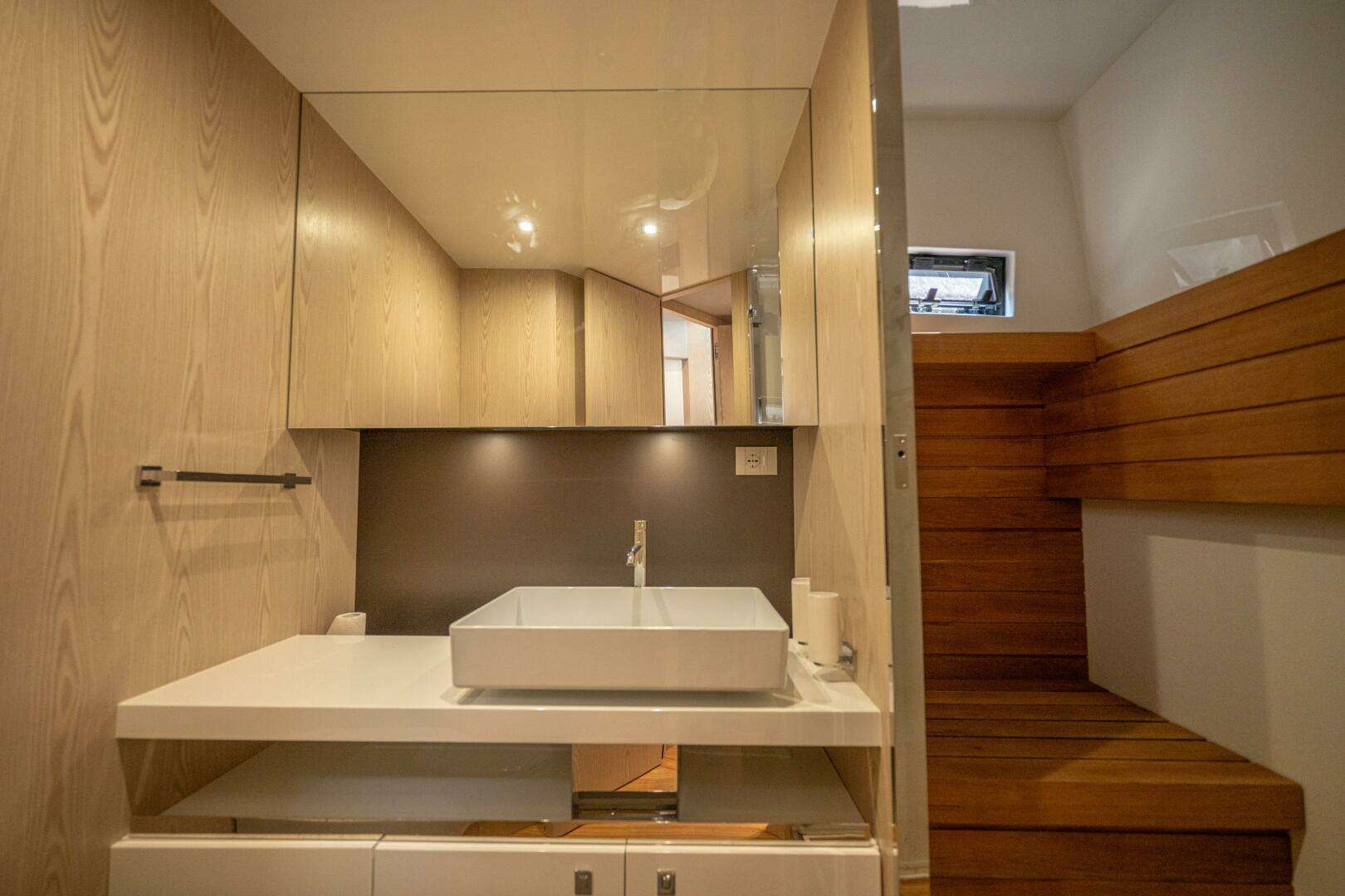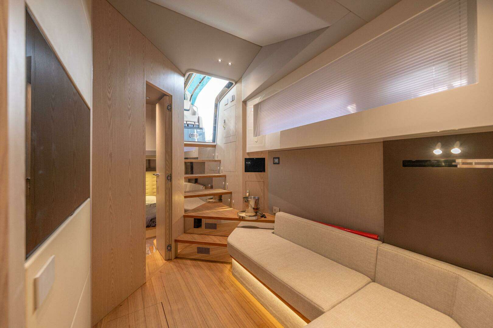 Below deck, two double staterooms showcase premium finishes and clever design, offering true luxury for day cruising or extended stays.
