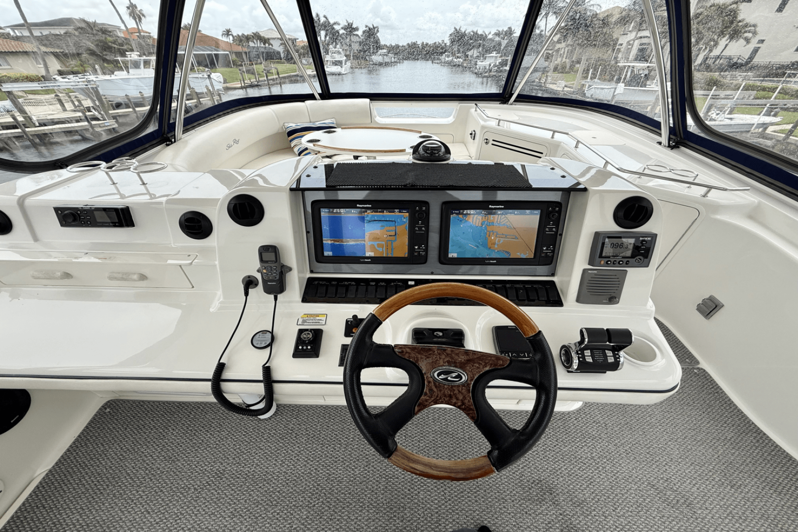 Powered by two MAN 900 engines, this vessel offers unmatched performance, ensuring exhilarating rides at sea. Experience the thrill of cruising with confidence, thanks to the superior engineering that defines Sea Ray.