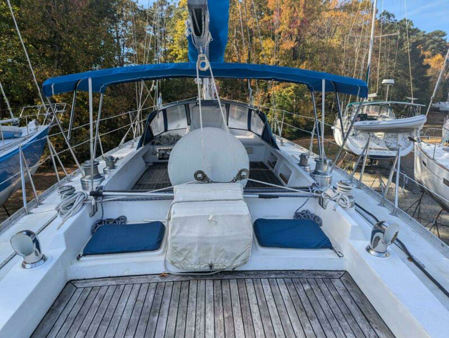 - Teak sundeck located aft of cockpit with cushions