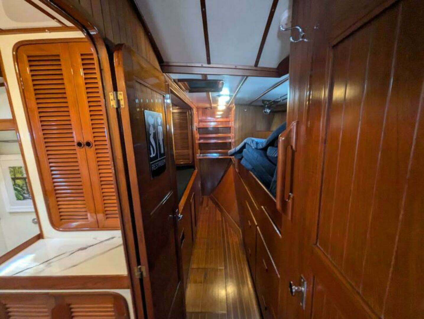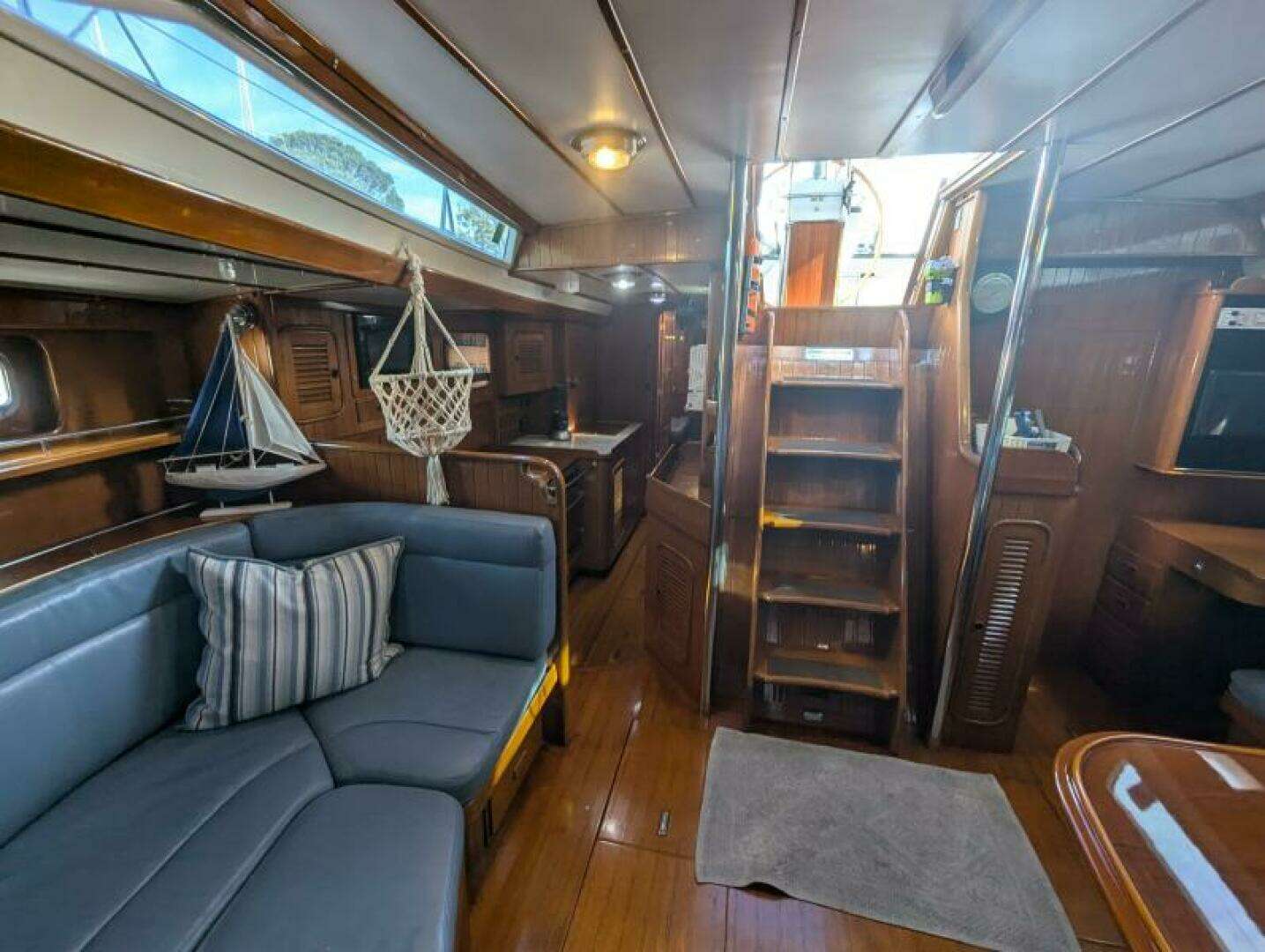 | Beautiful Teak Interior – Classic craftsmanship with ample storage |