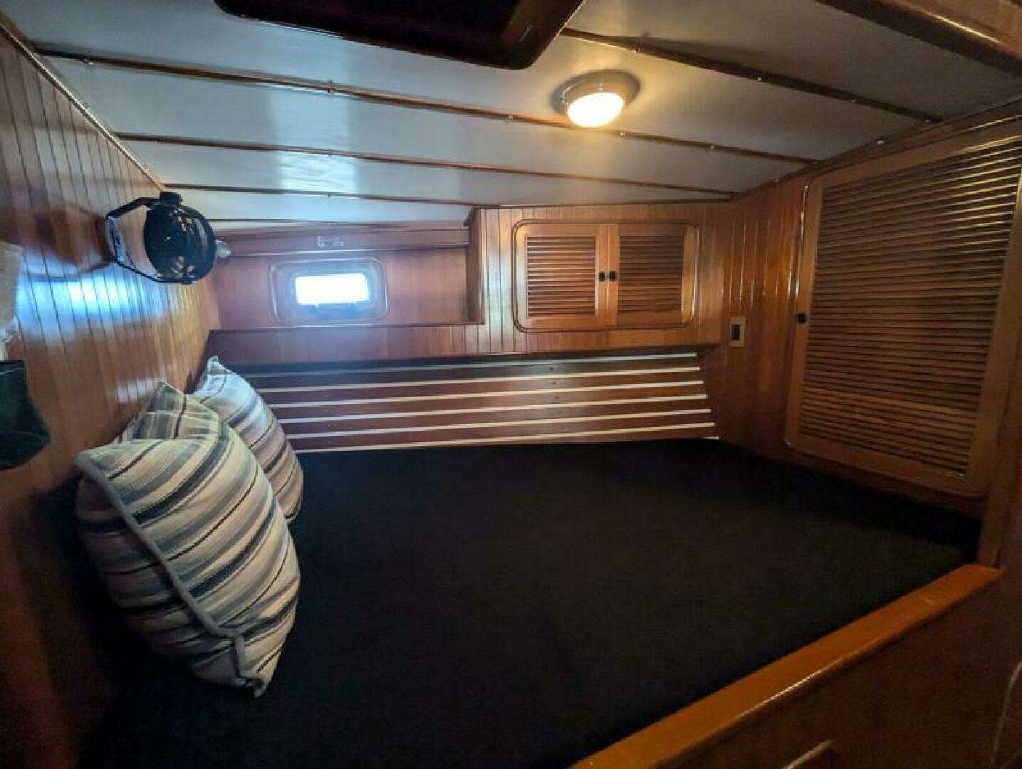 At Last… is an absolute beast of a boat. This Tayana 55 boasts a beautiful old growth teak interior with two cabins, a centerline aft berth, two heads both with separate showers, and tons of storage. Her engine room features a 135 HP Perkins 4-135 and a Westerbeke 8KW generator and is a mechanical chamber of wonders!