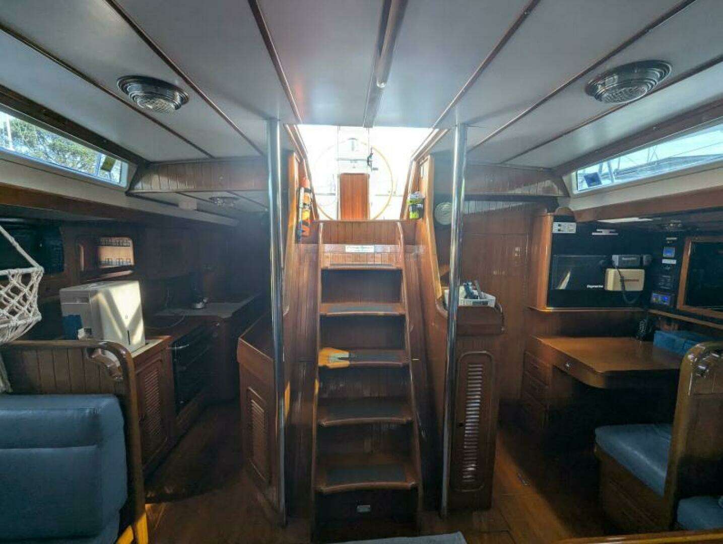 - Navstation with captain’s chair to port of companionway