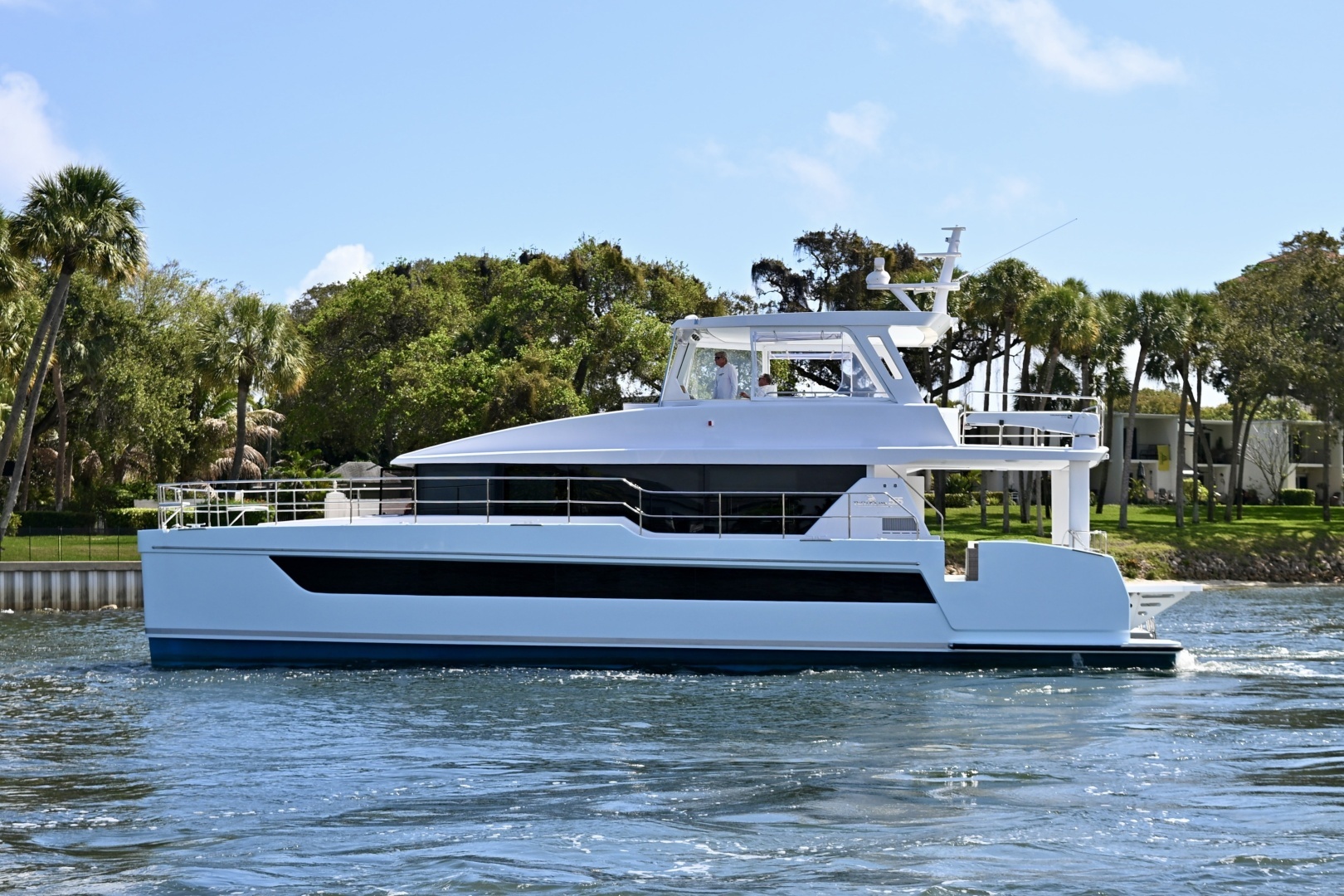 - Custom Aluminum sliding aft door with flush deck transition between Aft Deck and Saloon.