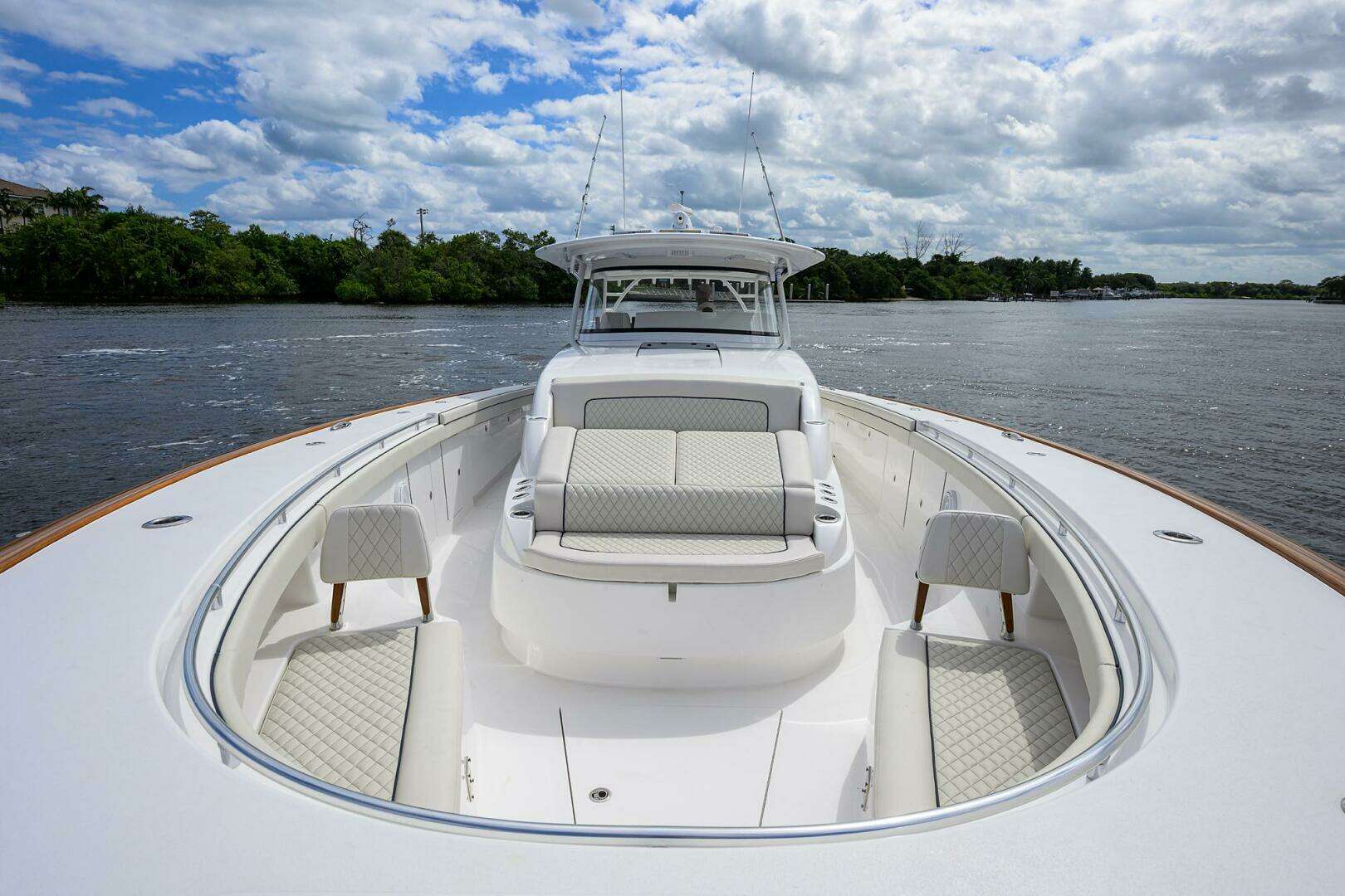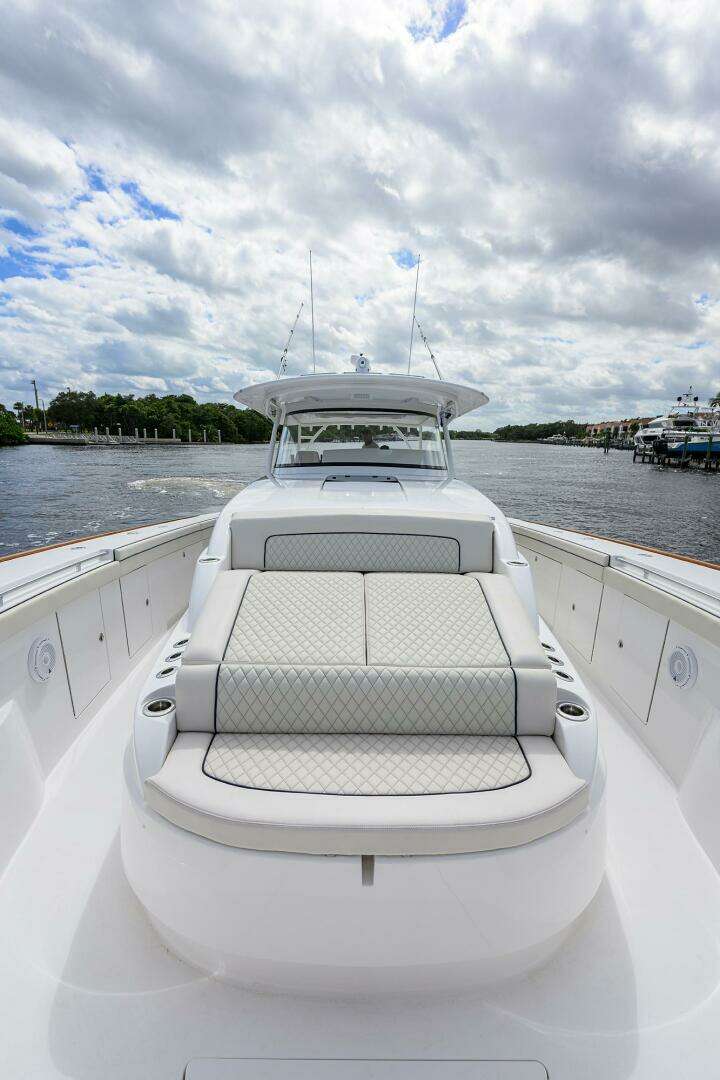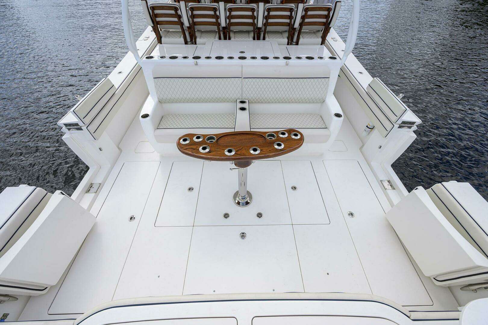 - Release Marine “ladder back” seating throughout – (4) electric powered helm seats with armrests, 5 x second row with armrests