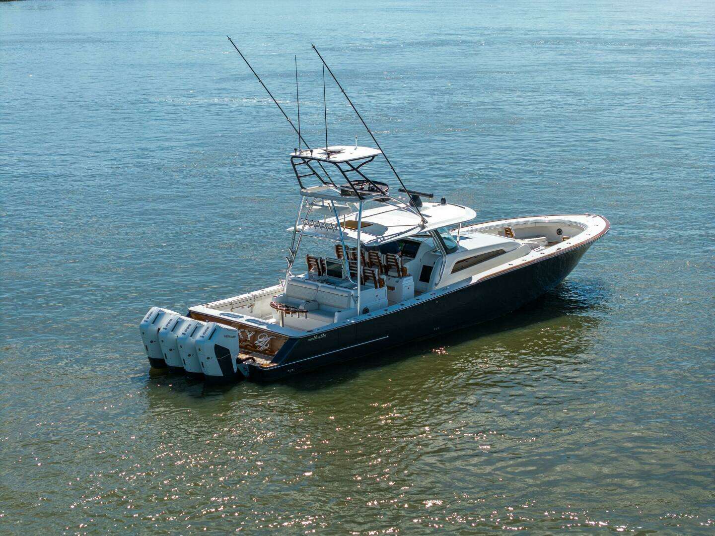 Introducing the stunning Valhalla Boatworks V-55 "Lucky 24," powered by four Mercury V12 outboard engines, each producing 600 horsepower for exceptional speed and agility on the water. With only 189 hours of use, these engines offer reliable performance for all your adventures. The vessel features a Custom Marlin Tower Palm Beach and an AME Electronics package, complemented by JPOD joystick control and a bow thruster for effortless maneuvering.