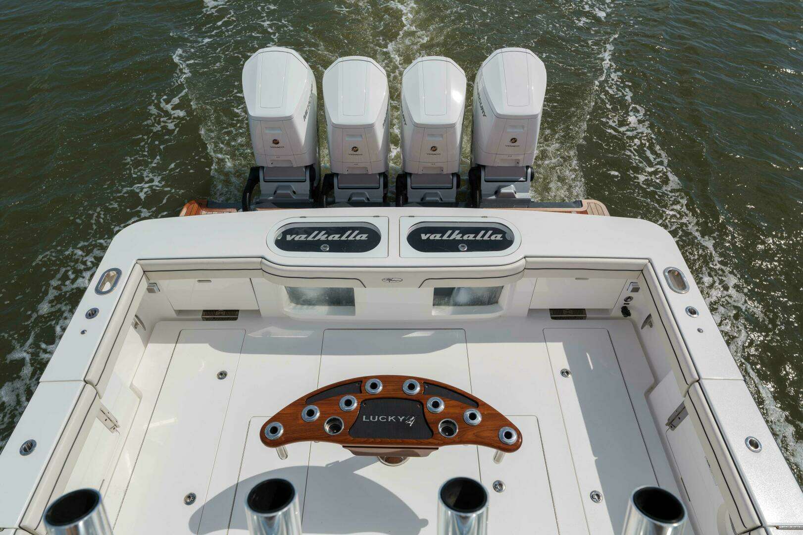 Introducing the stunning Valhalla Boatworks V-55 "Lucky 24," powered by four Mercury V12 outboard engines, each producing 600 horsepower for exceptional speed and agility on the water.