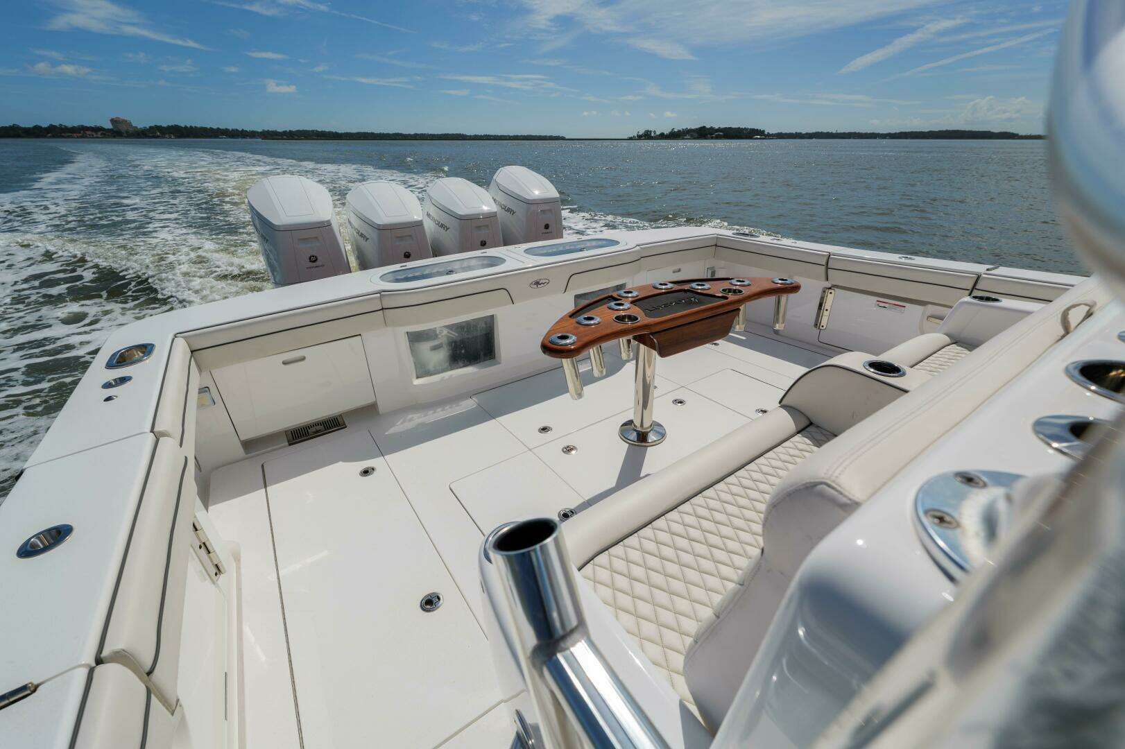 - Quad White V12 600 HP Mercury engines, with custom shark grey accent paint