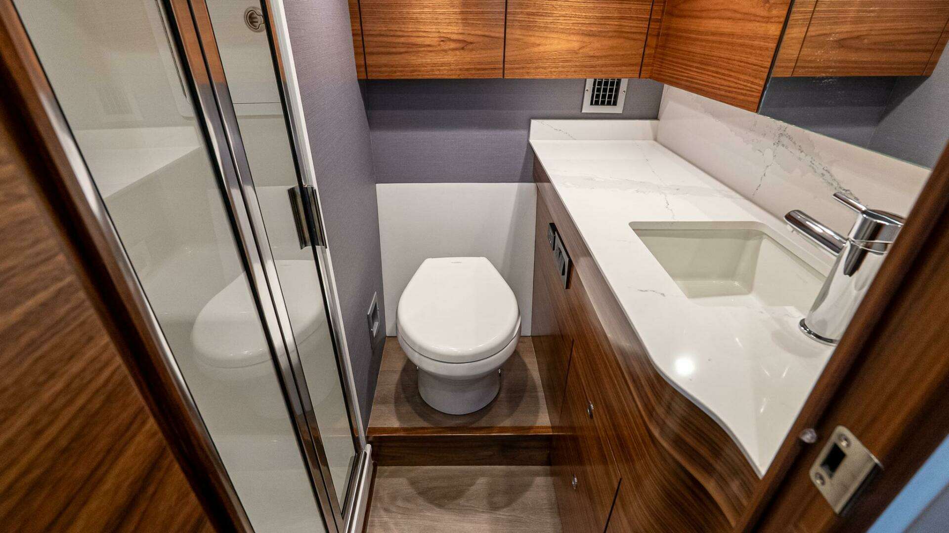 IN STOCK-READY FOR DELIVERY V55 SPORT YACHT Stars & Stripes hull color with custom summer kitchen, Garmin electronics package, Seakeeper, Split-bunk second stateroom. Be one of the first with this exciting new model!